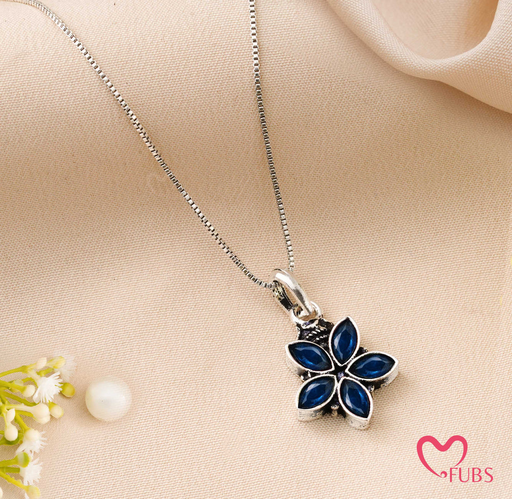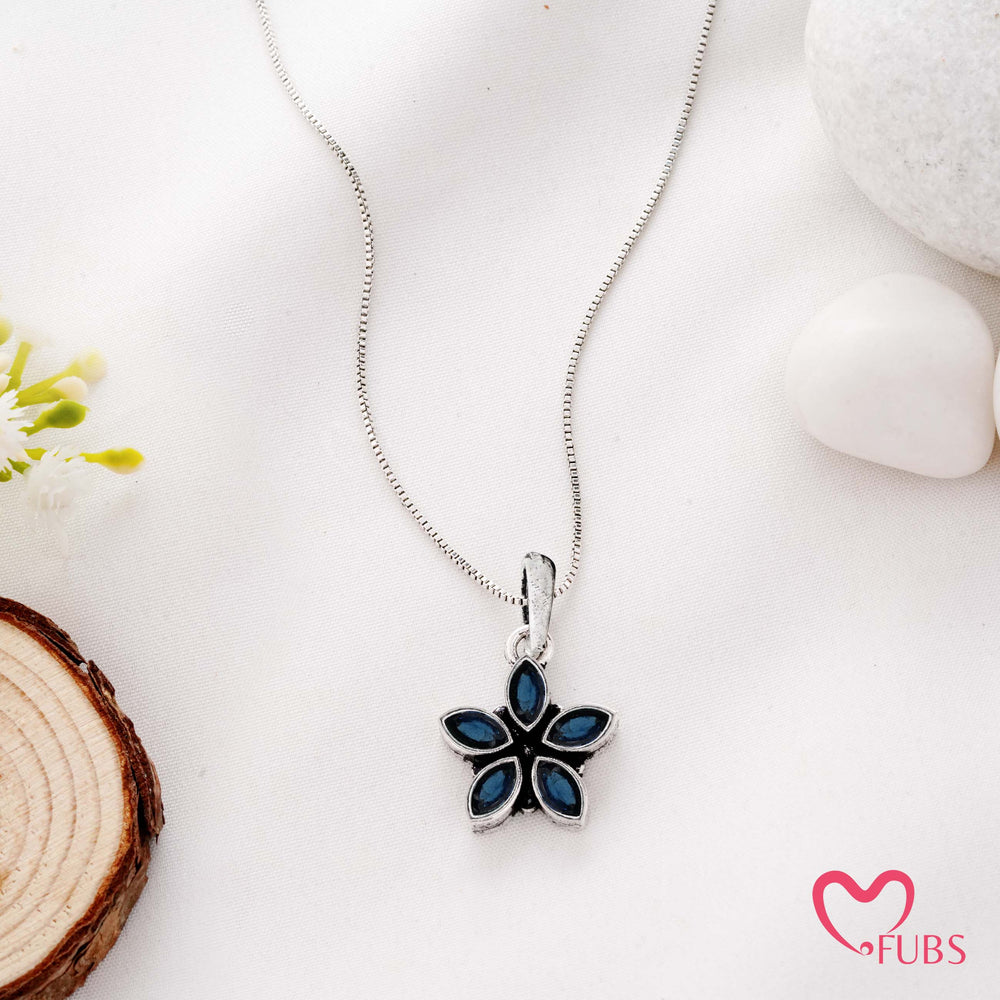 Necklace with Five‑Petal Floral Gemstone Pendant