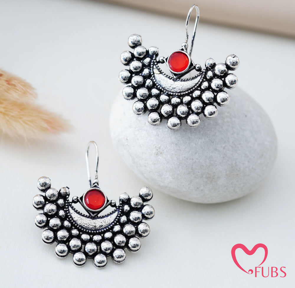 Oxidized Floral Drop Earrings – Traditional Petal Charm
