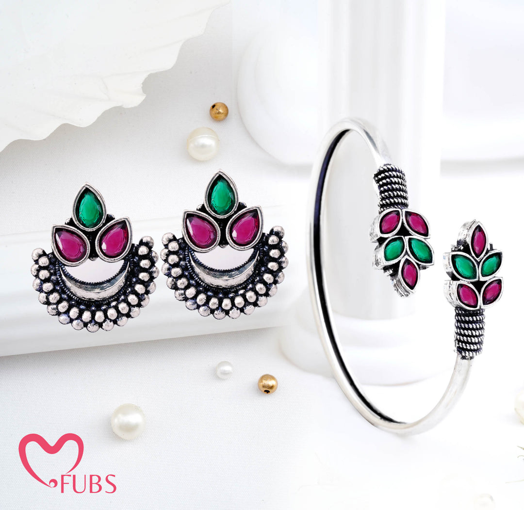 Oxidized Floral Stud Earrings - Traditional Aesthetic Studs