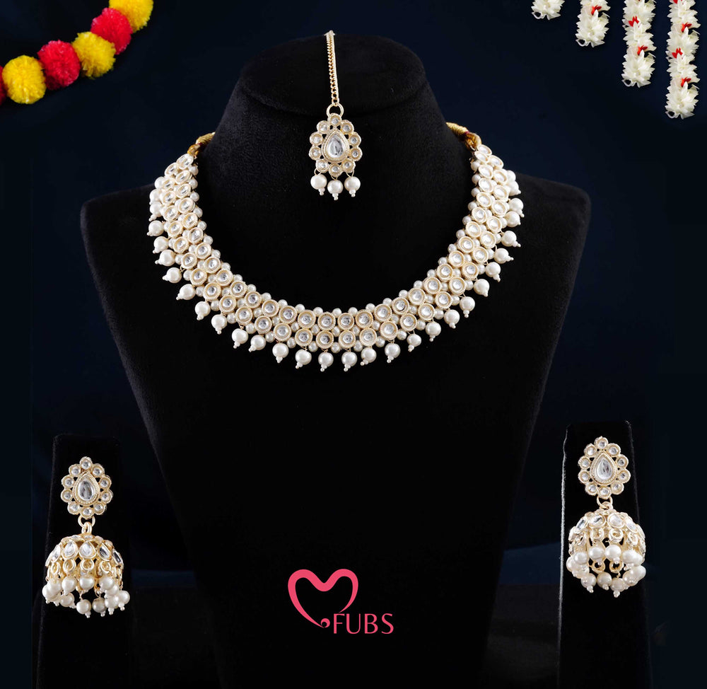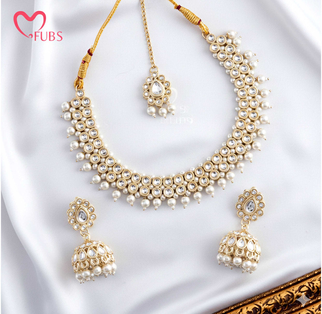 Regal Kundan Choker, Jhumkas & Tikka Set