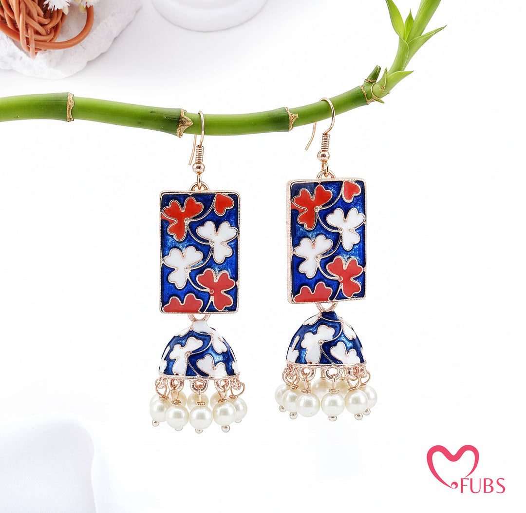 Rectangular Gemstone Jhumka Earrings with Pearls