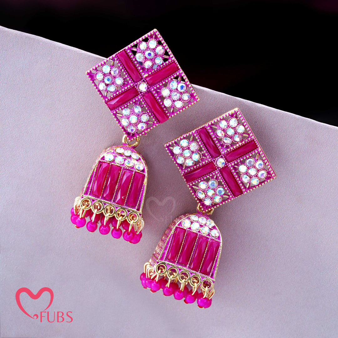 Square Motif Dome Earrings with Stones & Beads