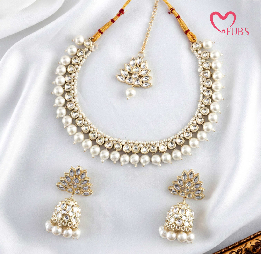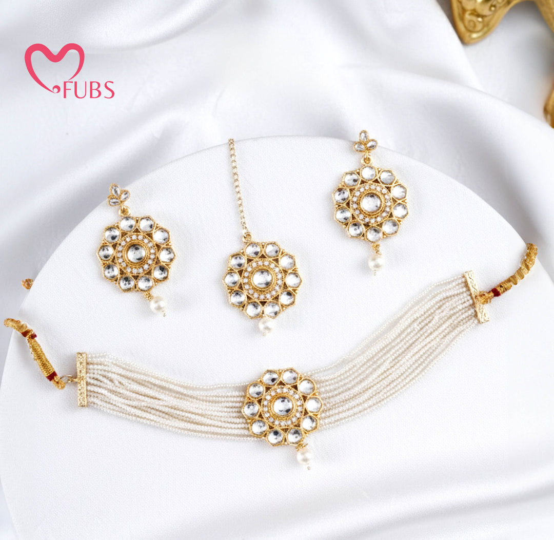 Kundan & Pearl Choker Jewelry Set with Maang Tikka