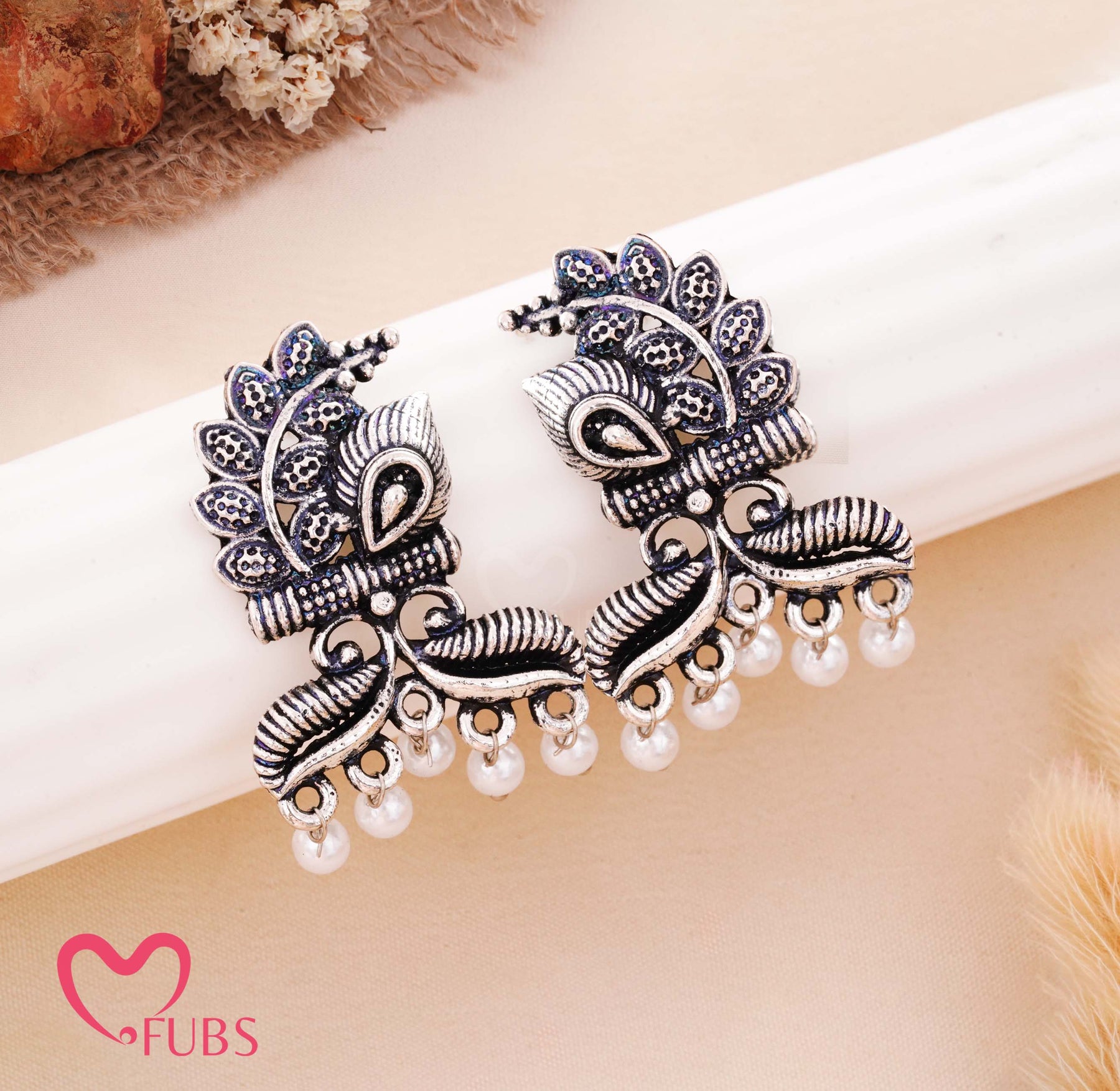 Celebrate timeless craftsmanship with FUBS Jaipuri oxidised earrings — a graceful fusion of artistry and vintage elegance. Handcrafted with intricate detailing and a rustic silver touch, each pair reflects the soul of Jaipur’s traditional design.