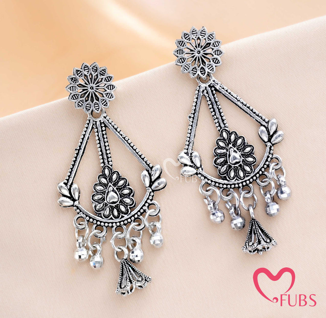 Chandni Oxidised-Toned Filigree Drops with Floral Engravings