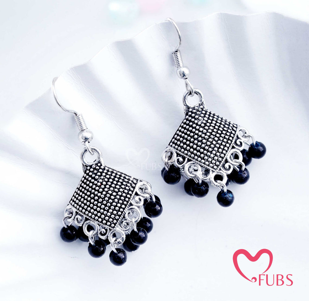 The Maya Rhombus Jhumkas – Antique Geometric Oxidized Earrings