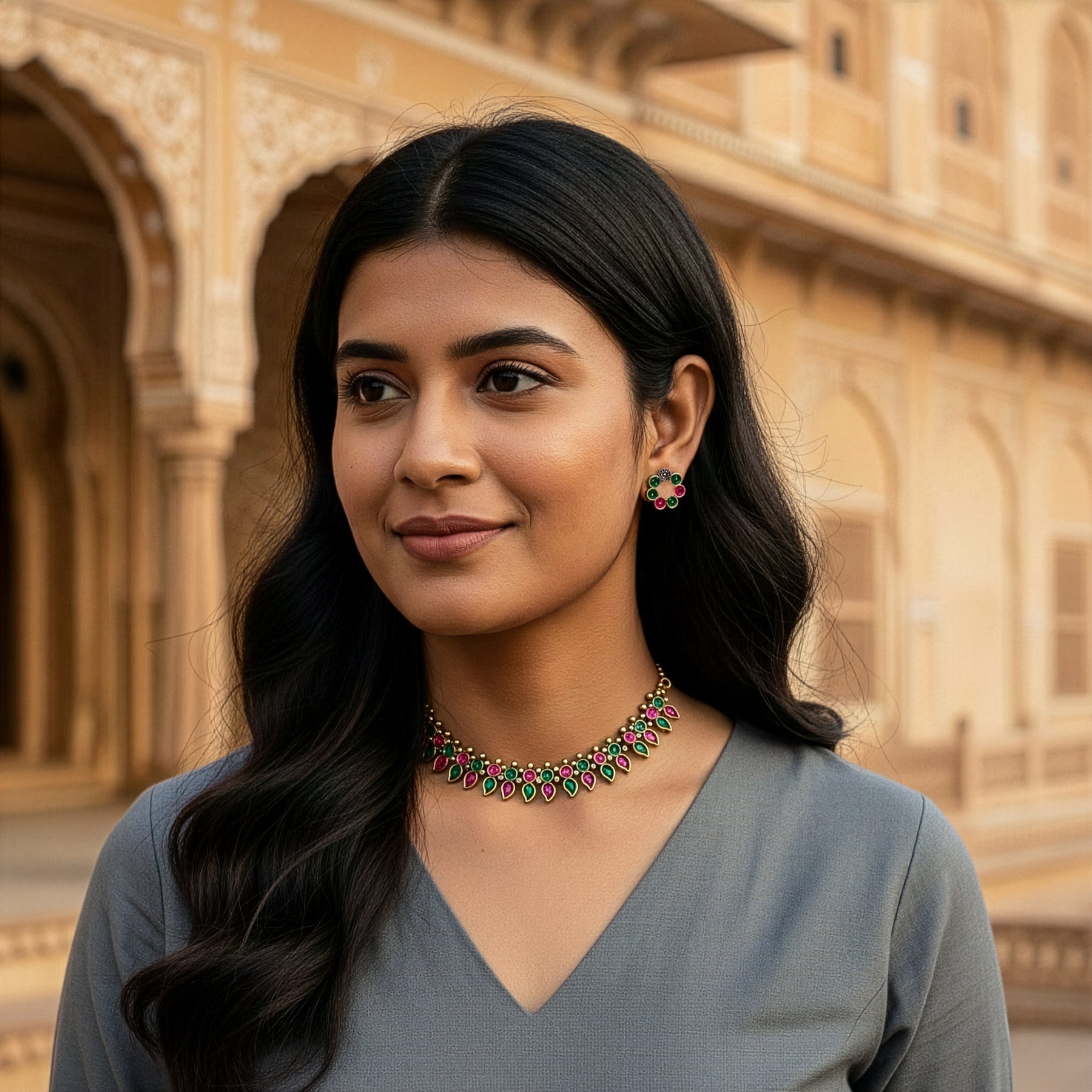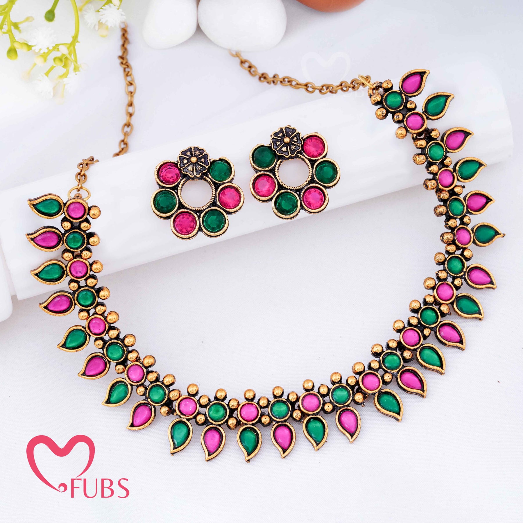 Add timeless elegance to your ethnic look with FUBS Choker Sets. Featuring traditional designs and fine detailing, these chokers are perfect for weddings, festivals, and special occasions. Comfortable to wear and rich in style, they pair beautifully with any traditional outfit.