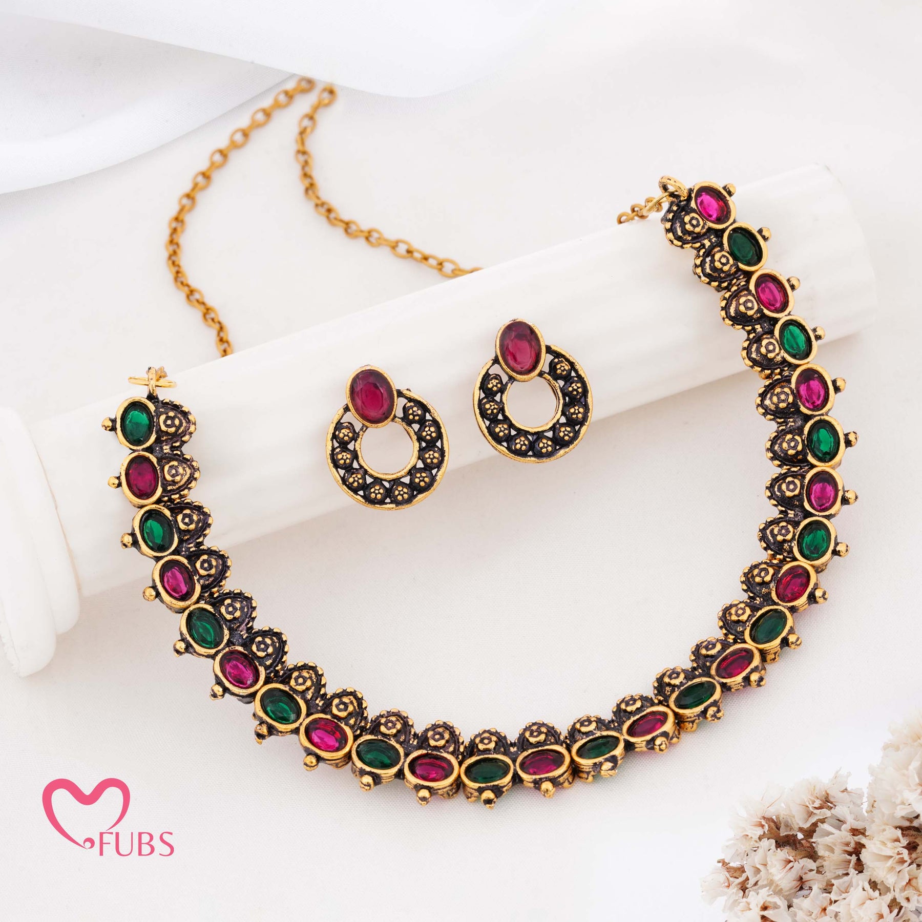 Add timeless elegance to your ethnic look with FUBS Choker Sets. Featuring traditional designs and fine detailing, these chokers are perfect for weddings, festivals, and special occasions. Comfortable to wear and rich in style, they pair beautifully with any traditional outfit.