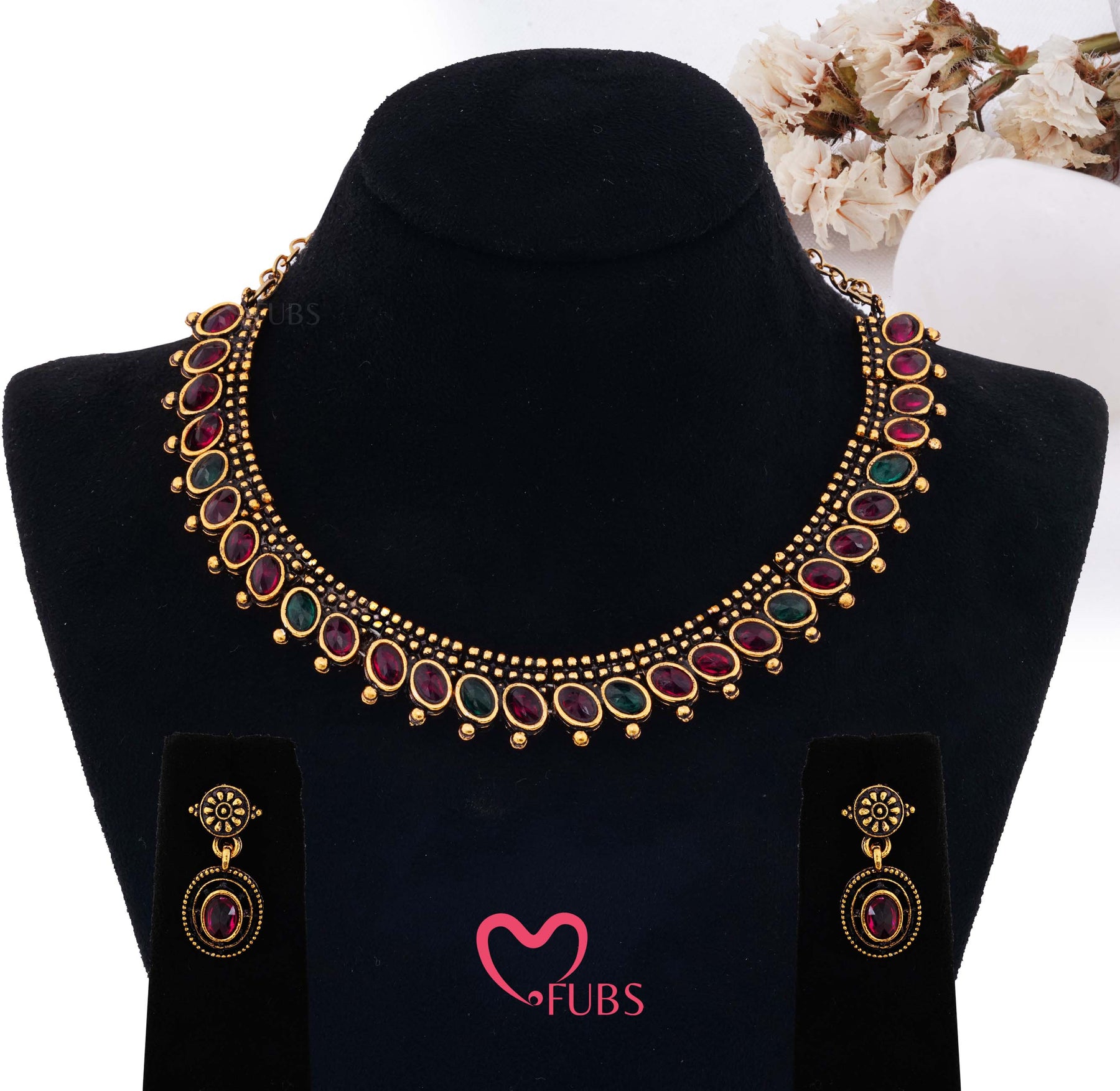 Add timeless elegance to your ethnic look with FUBS Choker Sets. Featuring traditional designs and fine detailing, these chokers are perfect for weddings, festivals, and special occasions. Comfortable to wear and rich in style, they pair beautifully with any traditional outfit.