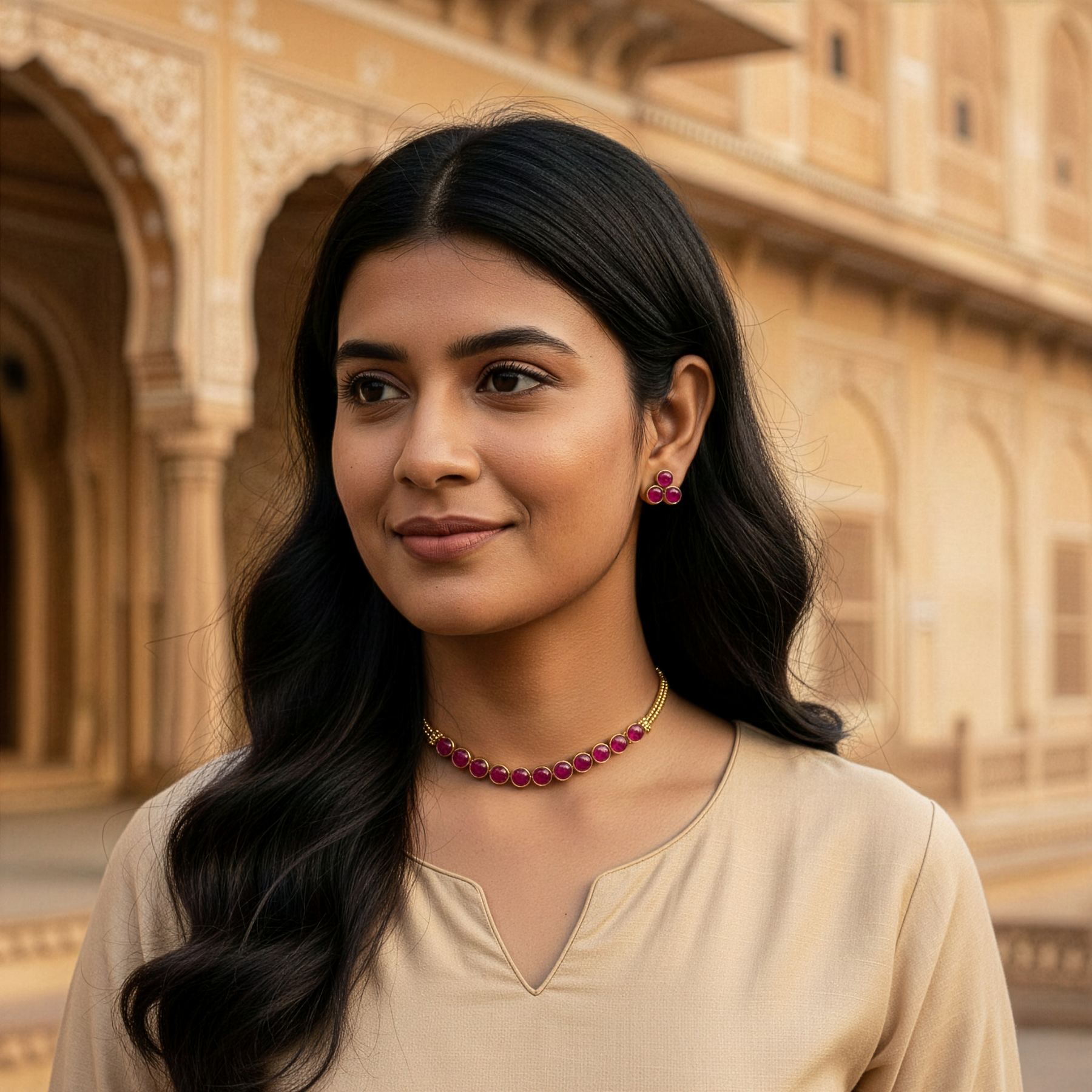 Antique Finish Temple Cabochon Choker Set (Small)