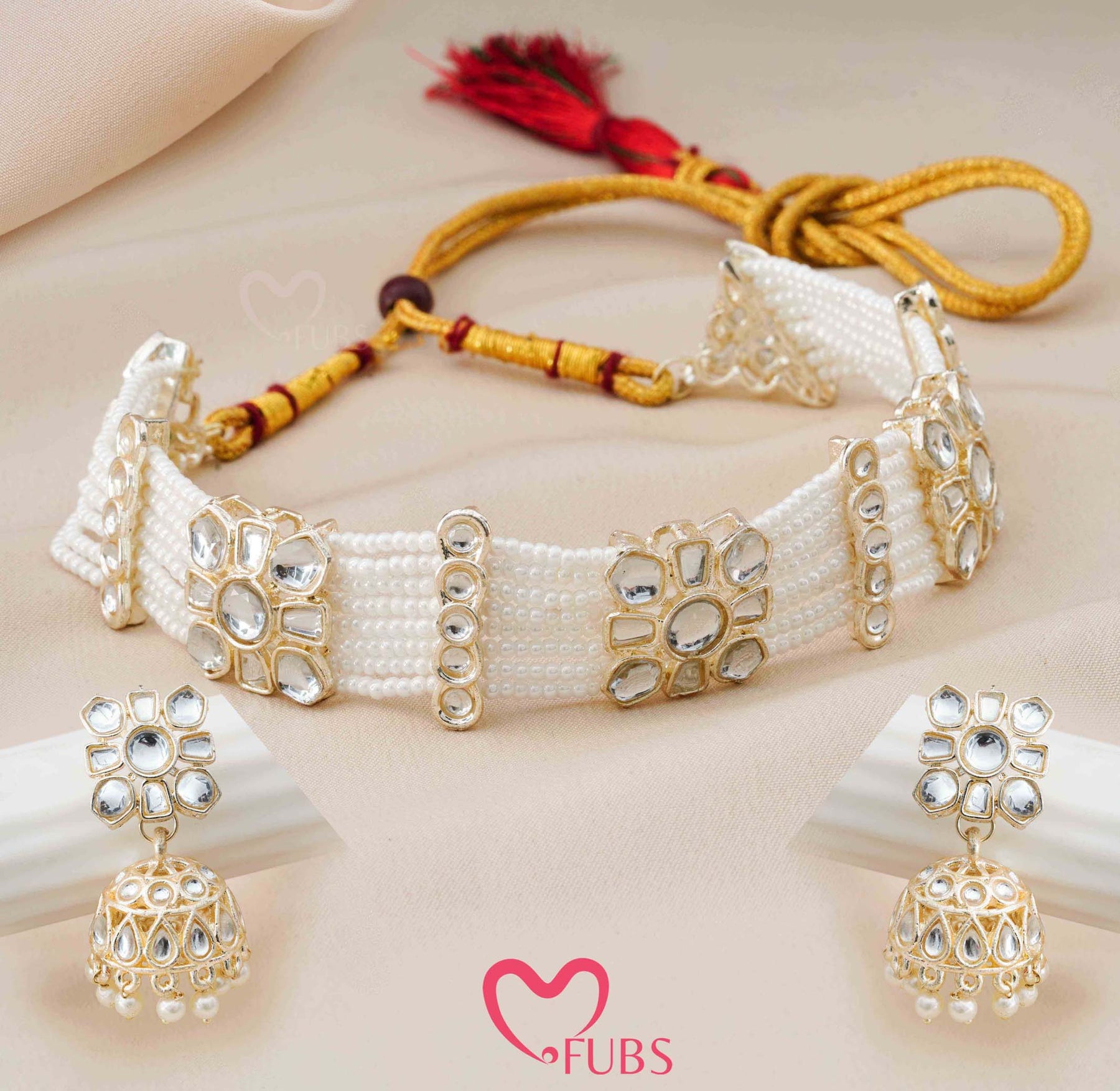 Add timeless elegance to your ethnic look with FUBS Choker Sets. Featuring traditional designs and fine detailing, these chokers are perfect for weddings, festivals, and special occasions. Comfortable to wear and rich in style, they pair beautifully with any traditional outfit.