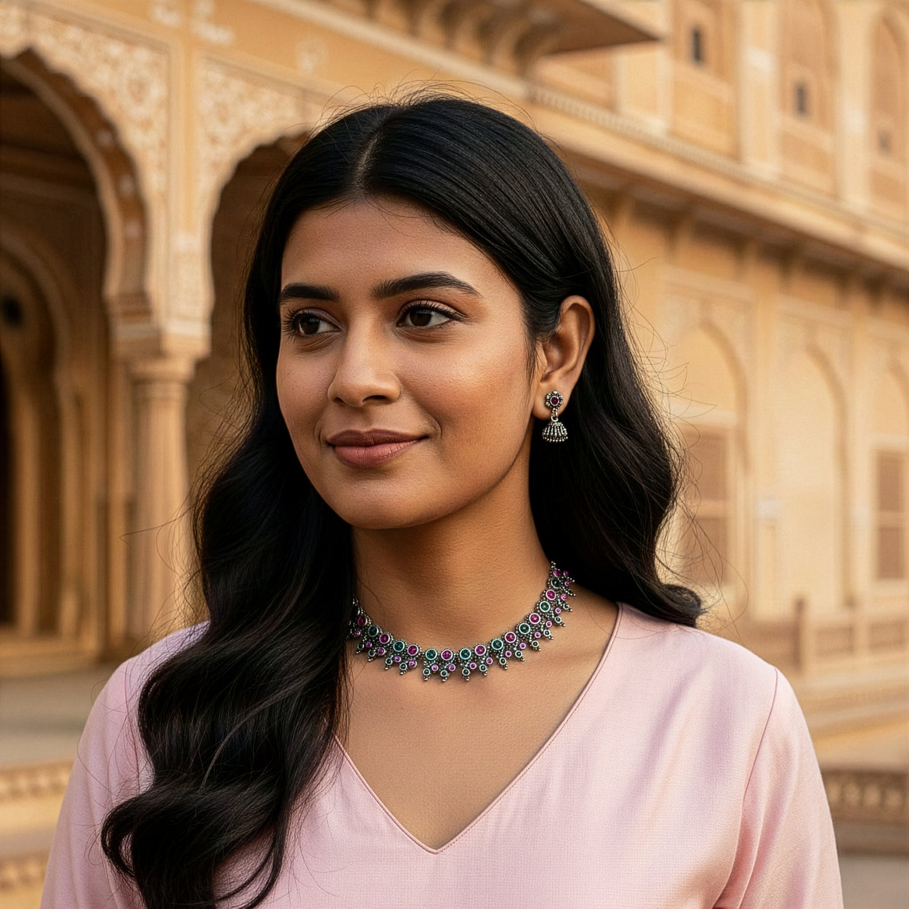 Add timeless elegance to your ethnic look with FUBS Choker Sets. Featuring traditional designs and fine detailing, these chokers are perfect for weddings, festivals, and special occasions. Comfortable to wear and rich in style, they pair beautifully with any traditional outfit.