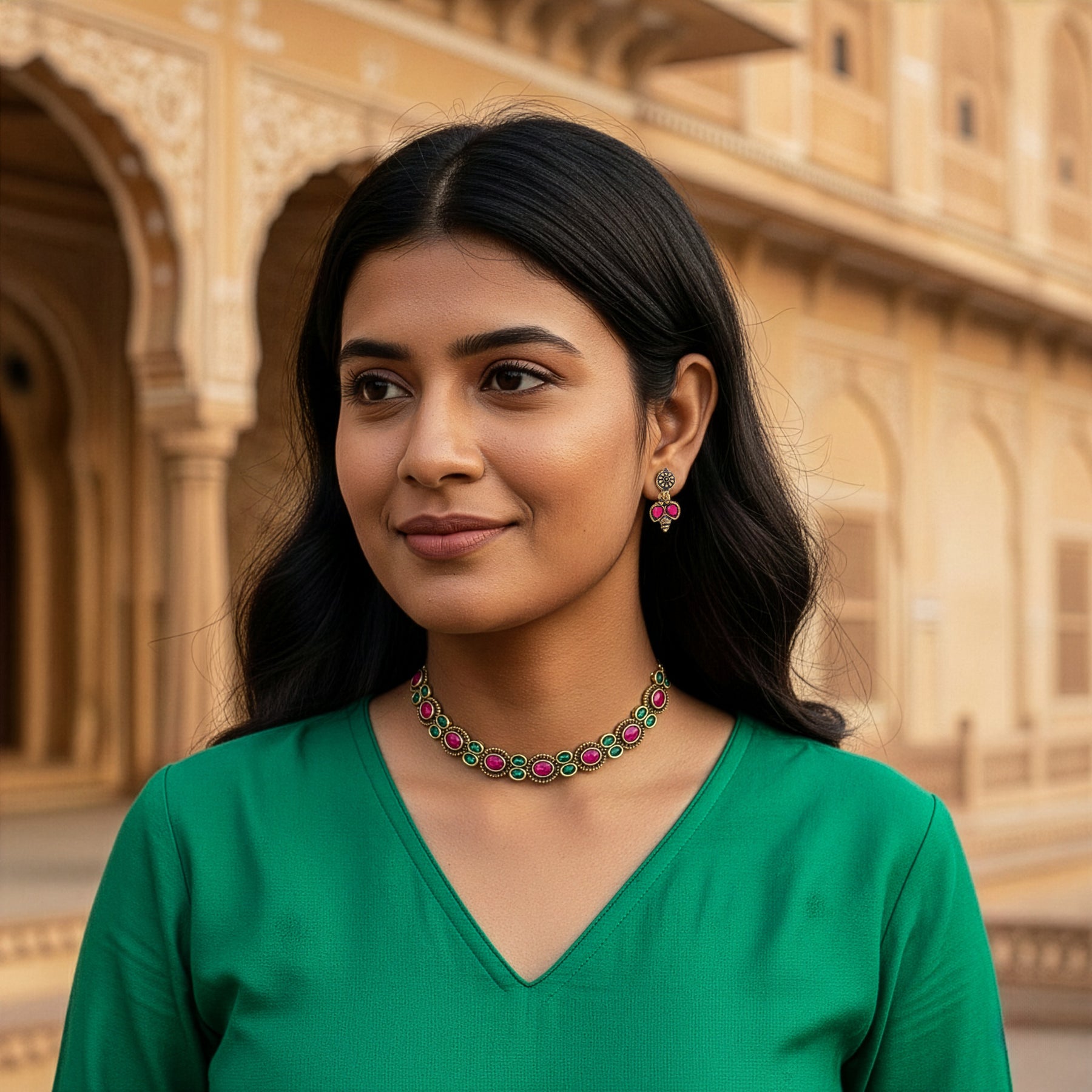 Traditional Antique Finish Oval Stone Choker Set