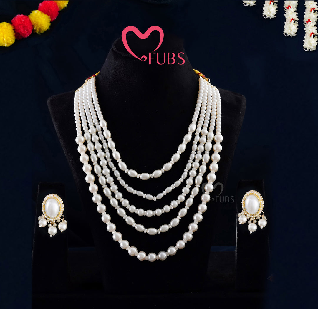 Traditional 5-Layer Pearl Rani Haar & Kundan Studs