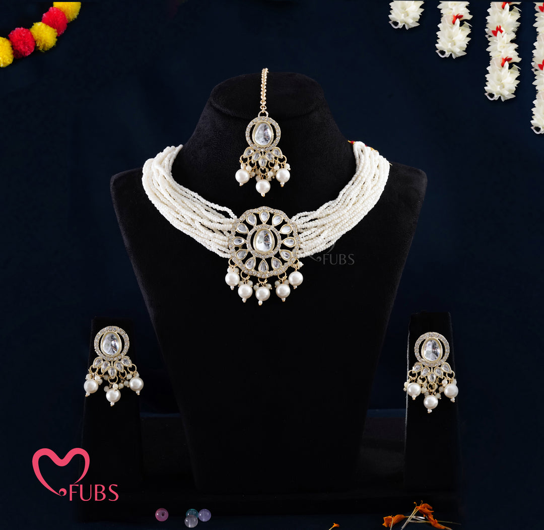 Traditional Kundan & Pearl Bridal Choker Set with Maang Tikka