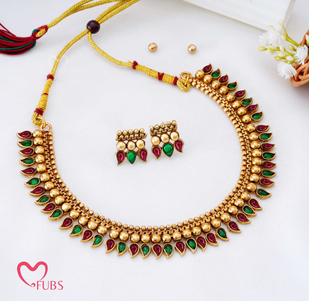 Classic Round Stone Choker Set with Ethnic Stud Earrings