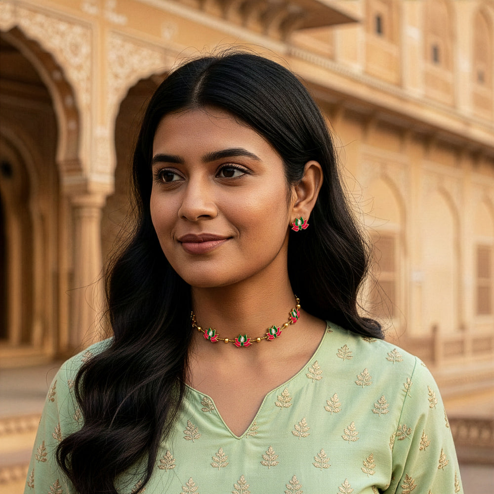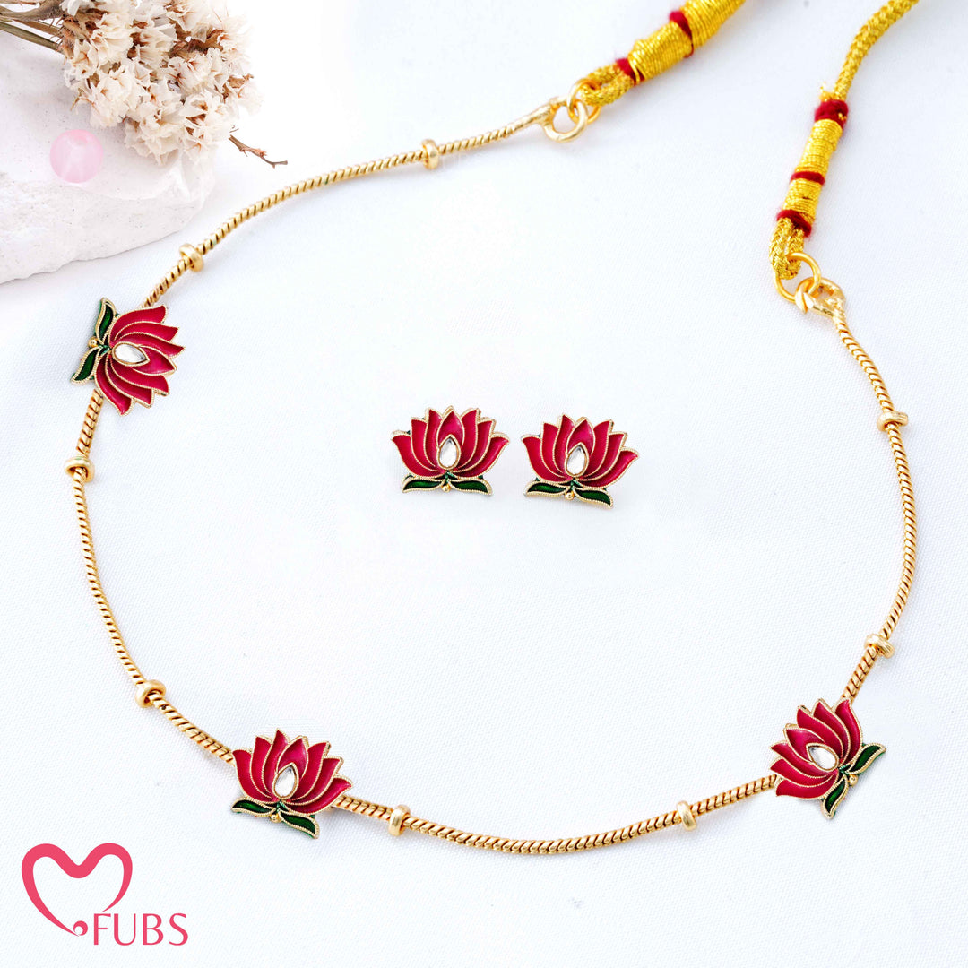 Deep Enamel Lotus Choker Necklace Set (Small)