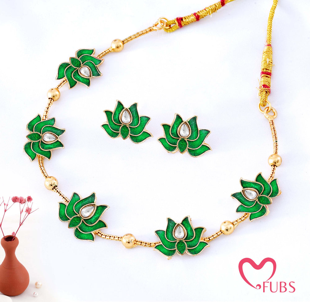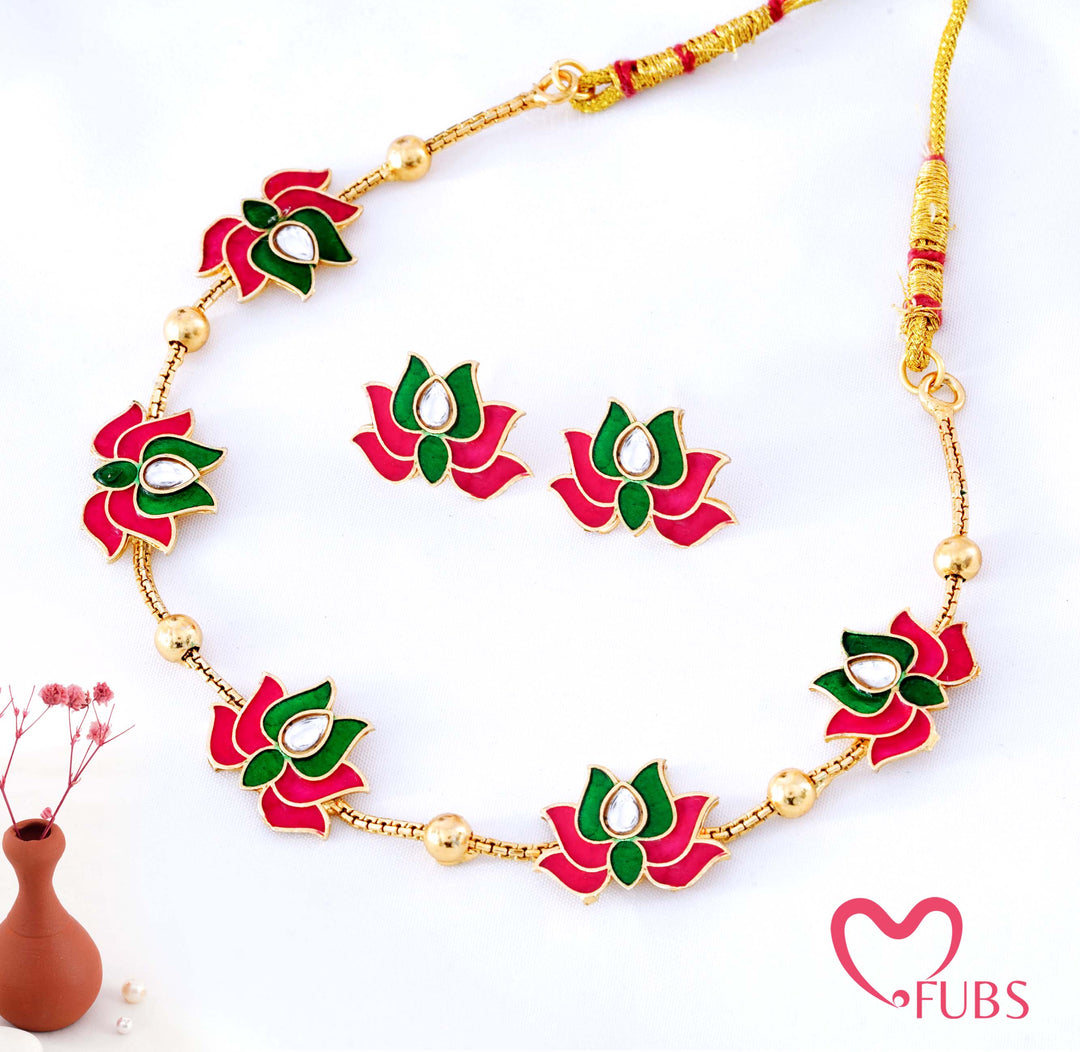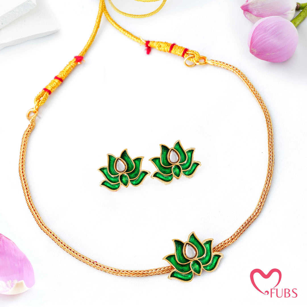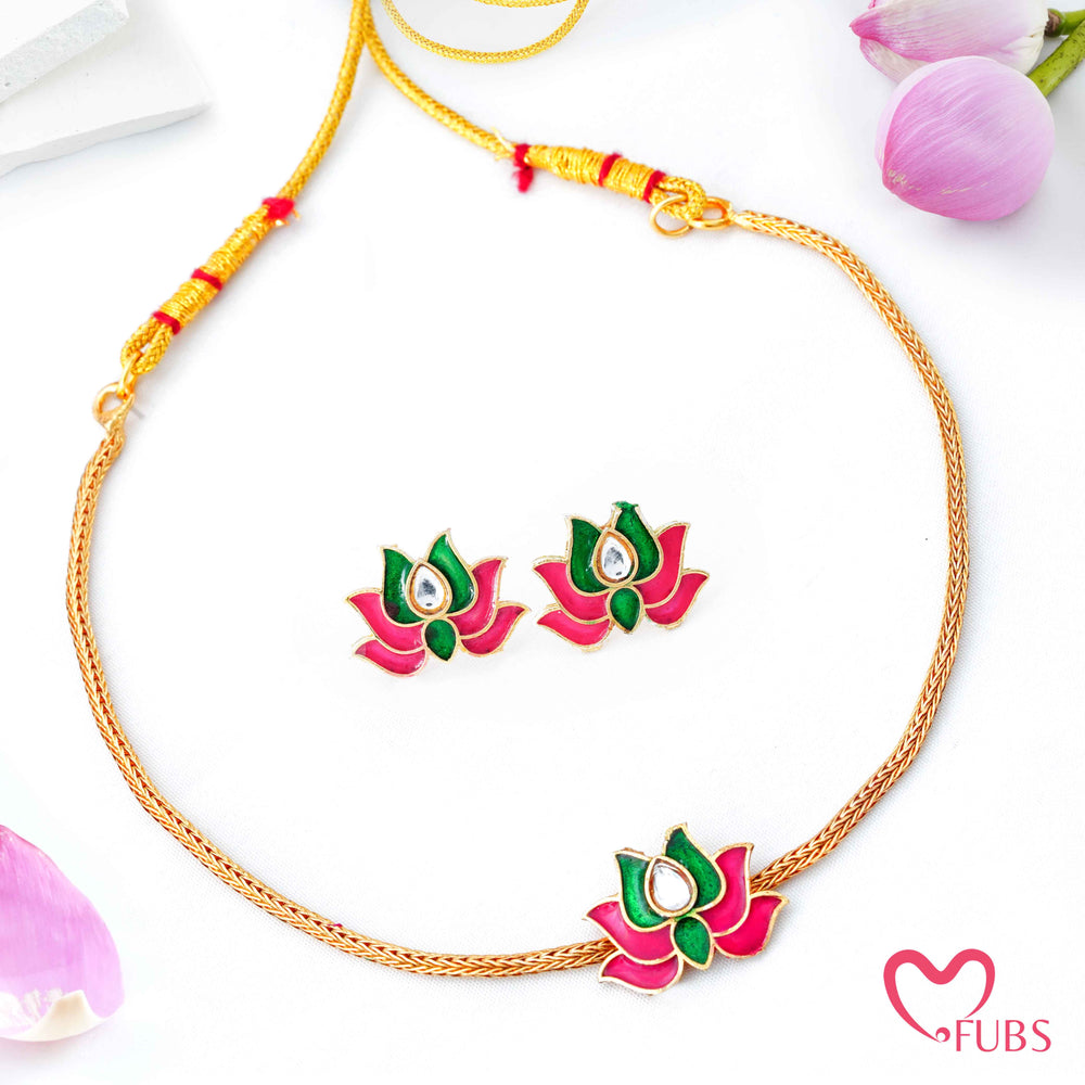 Deep Enamel Lotus Choker Necklace Set (Big)