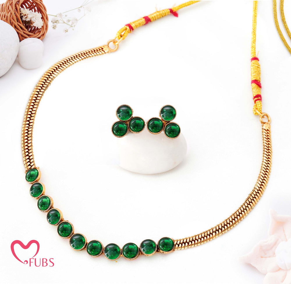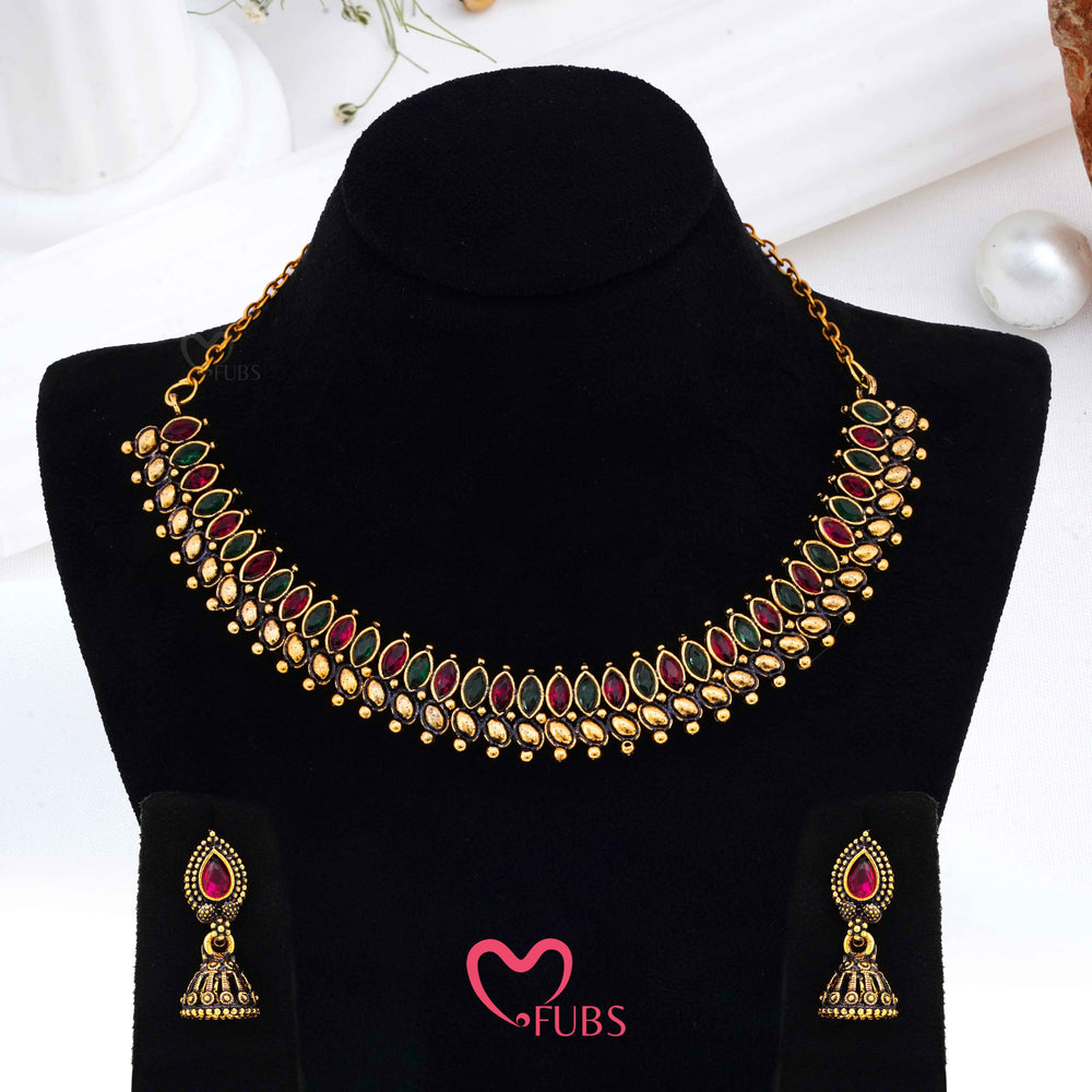 Traditional Choker Necklace in Matt Finish (Ruby & Emerald)