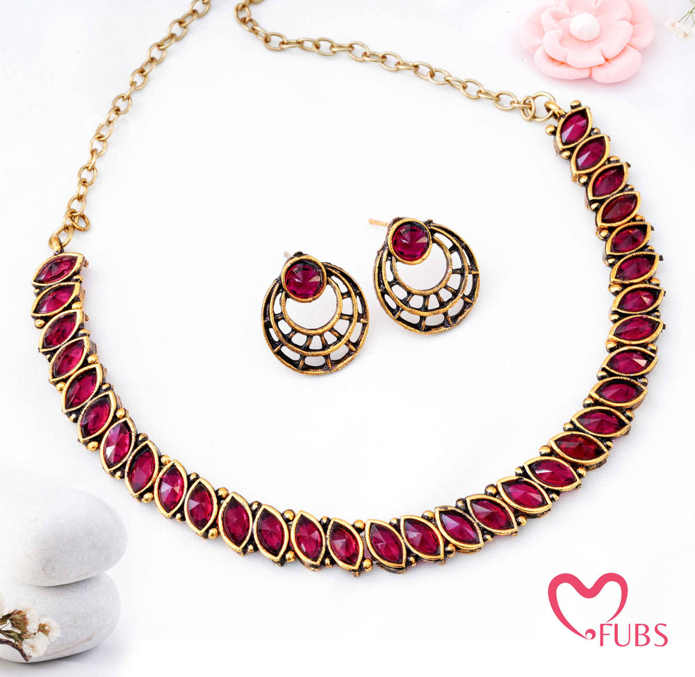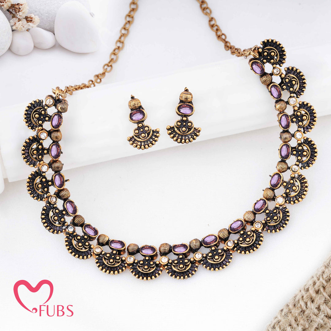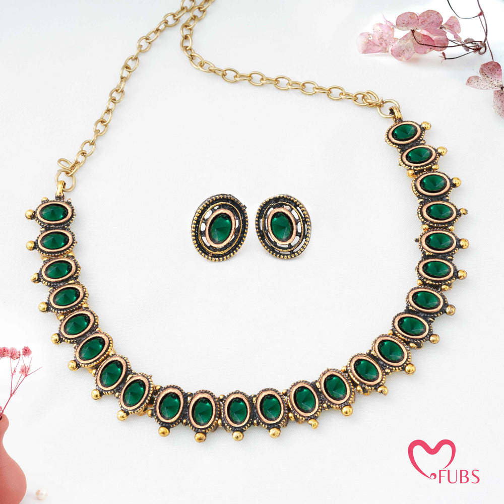 Oxidized Choker Set - Deep Stone Traditional Aesthetic