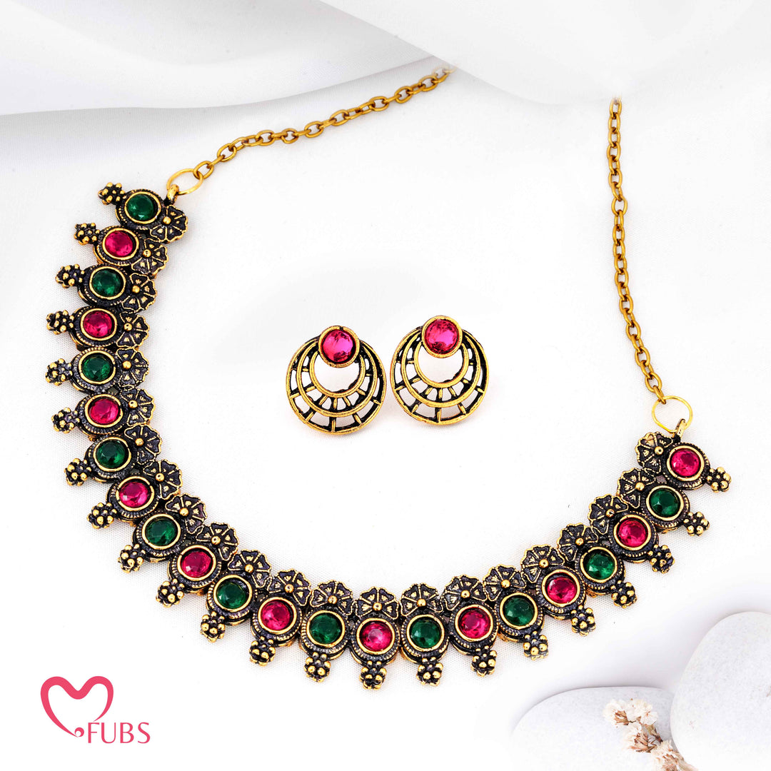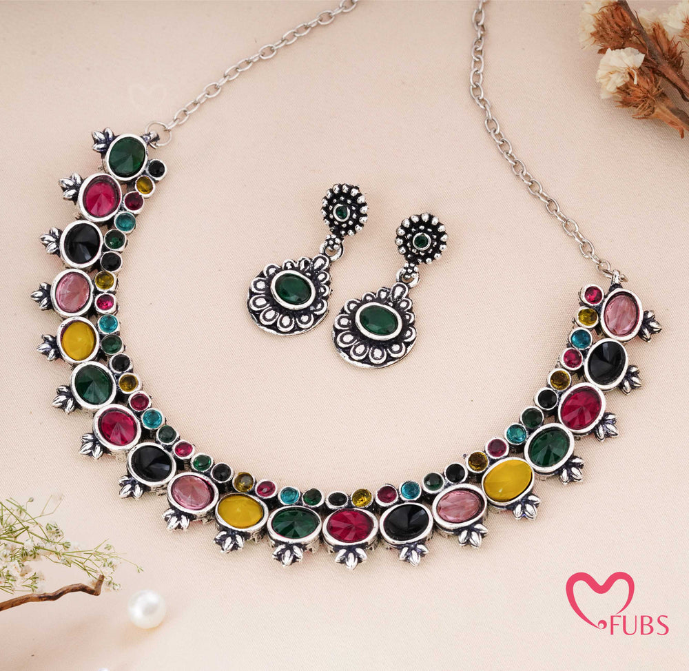 Traditional Oxidized Choker Set with Lustrous Festival Hues