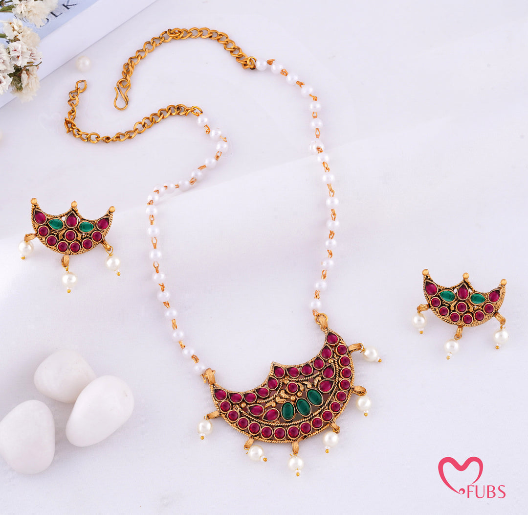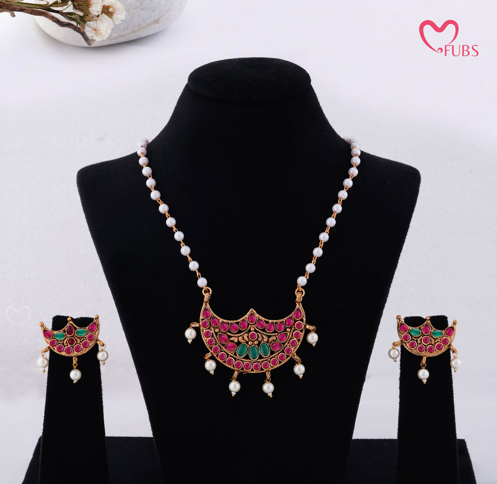 Antique Finish South Indian Pendant Set with Pearls