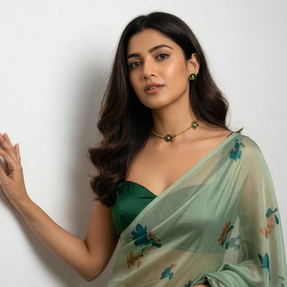 Aesthetic Traditional Beaded Choker Set with Meenakari Lotus Motifs