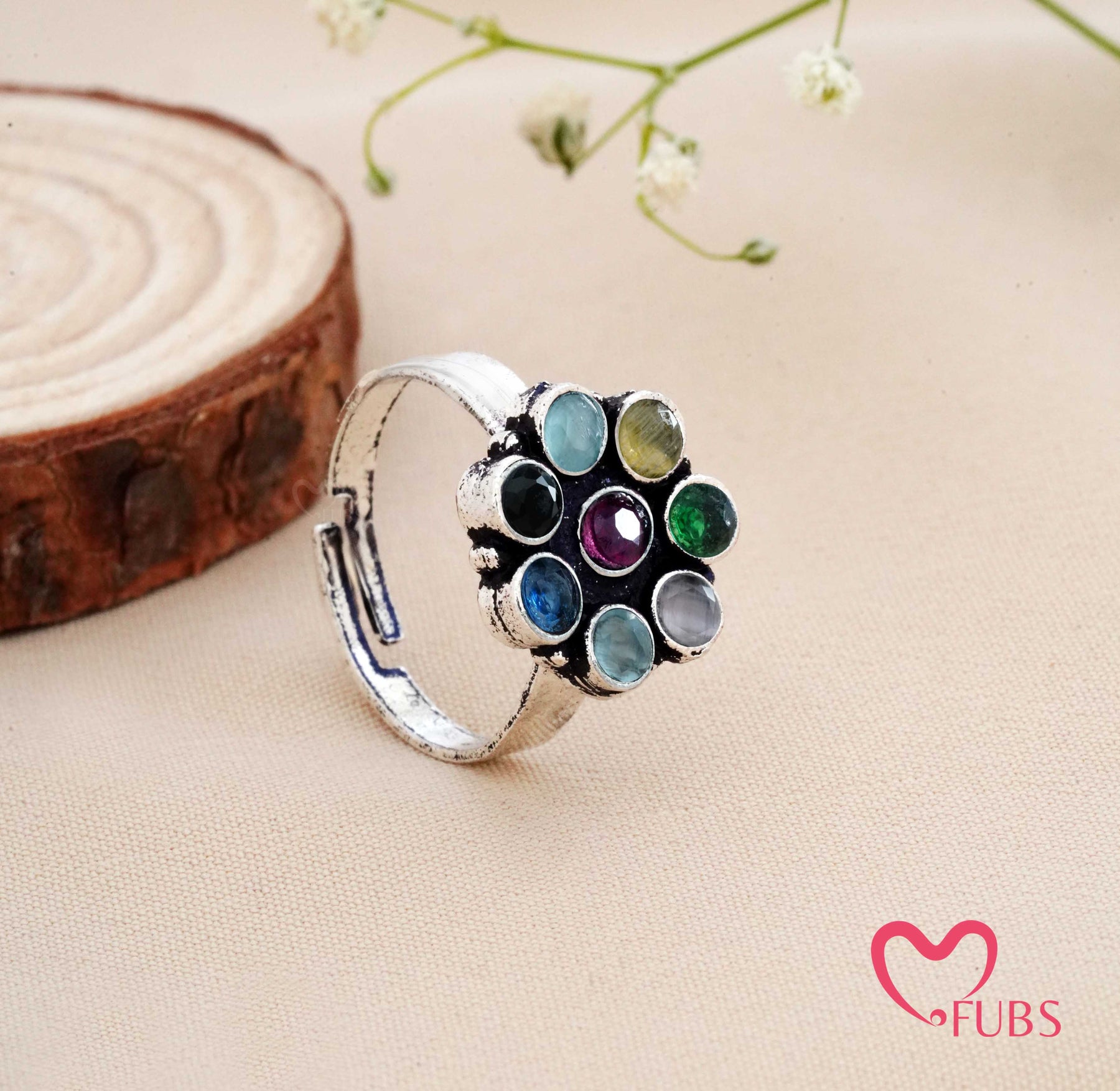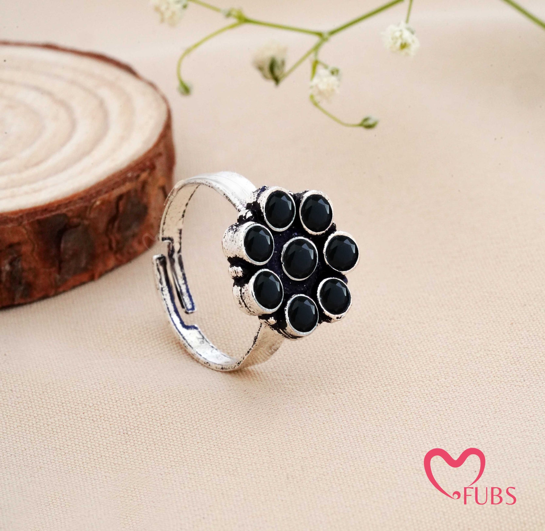 Traditional Oxidised Finish Stone Studded Ring