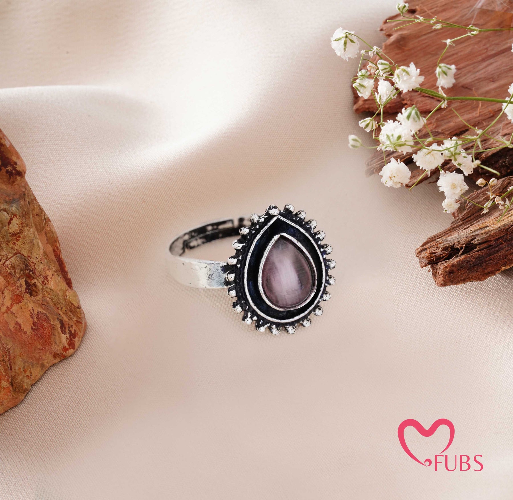 Traditional Oxidised Statement Teardrop Ring with Beaded Frame