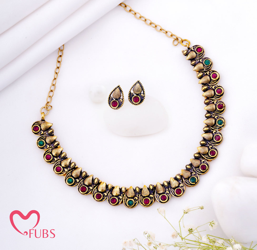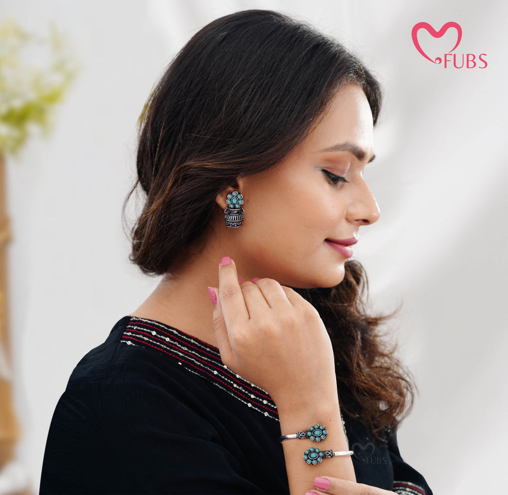 Royal Charms Oxidized Jewelry Set - Earring & Bracelet