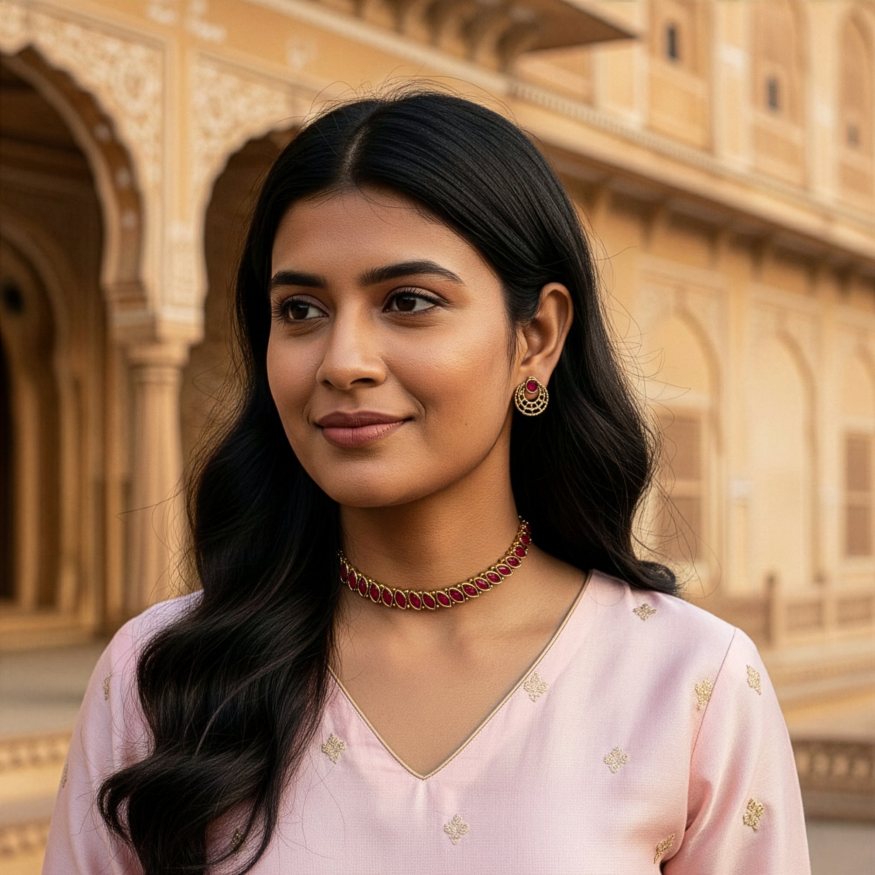 Add timeless elegance to your ethnic look with FUBS Choker Sets. Featuring traditional designs and fine detailing, these chokers are perfect for weddings, festivals, and special occasions. Comfortable to wear and rich in style, they pair beautifully with any traditional outfit.