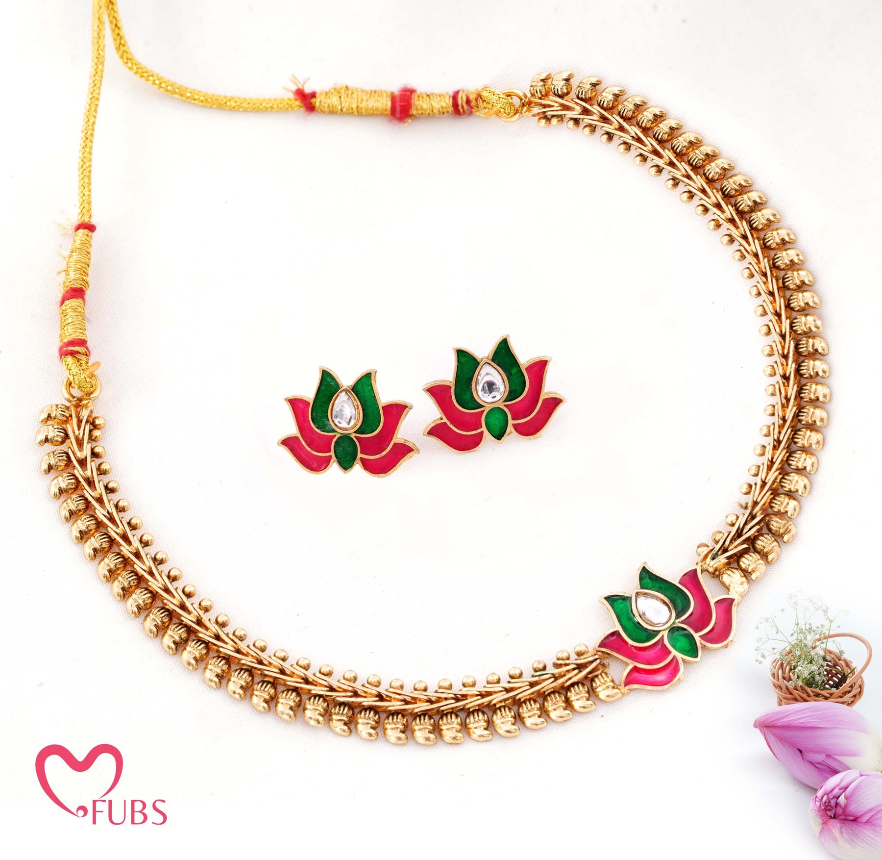 Add timeless elegance to your ethnic look with FUBS Choker Sets. Featuring traditional designs and fine detailing, these chokers are perfect for weddings, festivals, and special occasions. Comfortable to wear and rich in style, they pair beautifully with any traditional outfit.