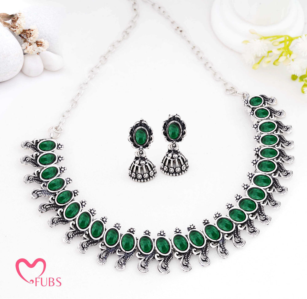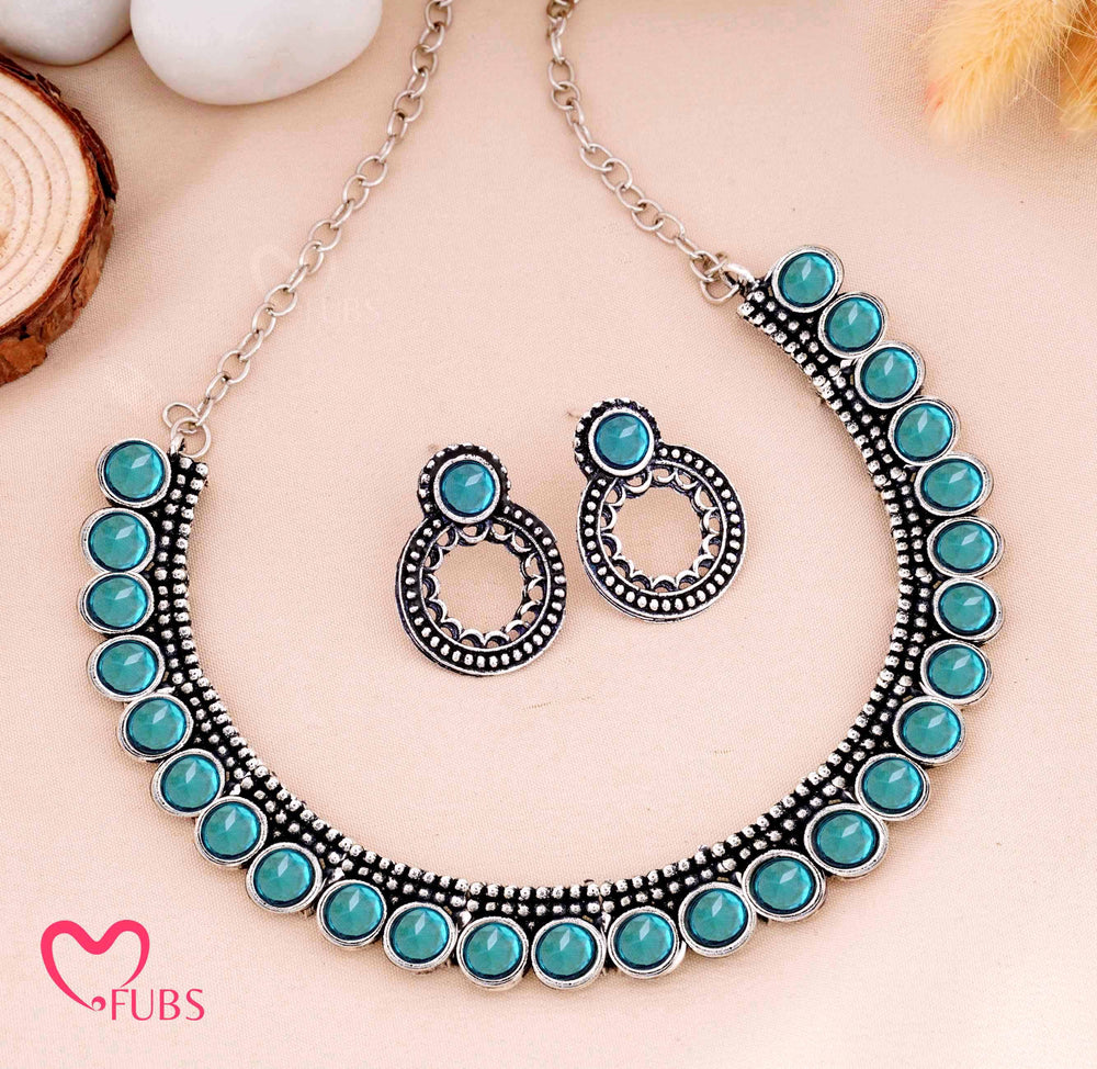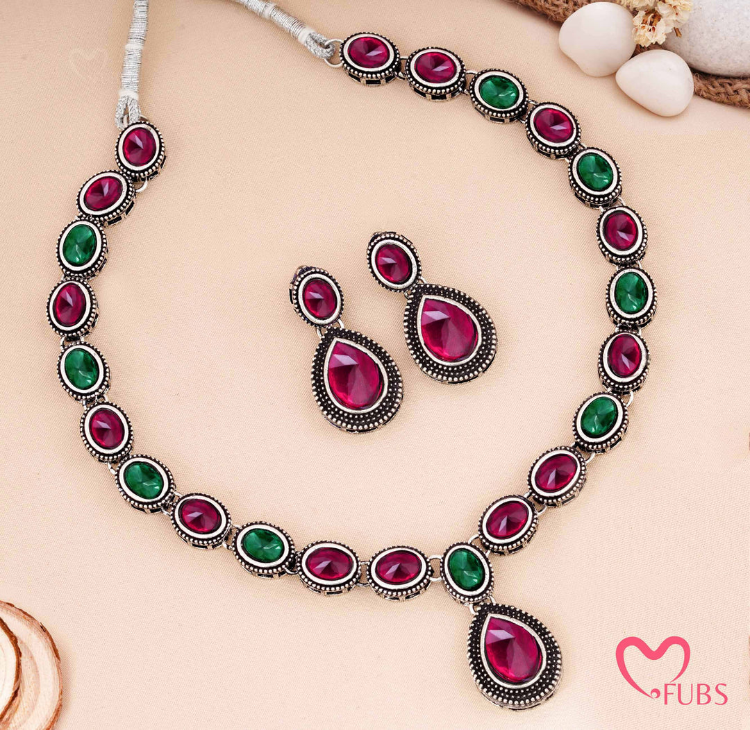 Oxidized Choker Necklace Set with Marquise Stone Motifs