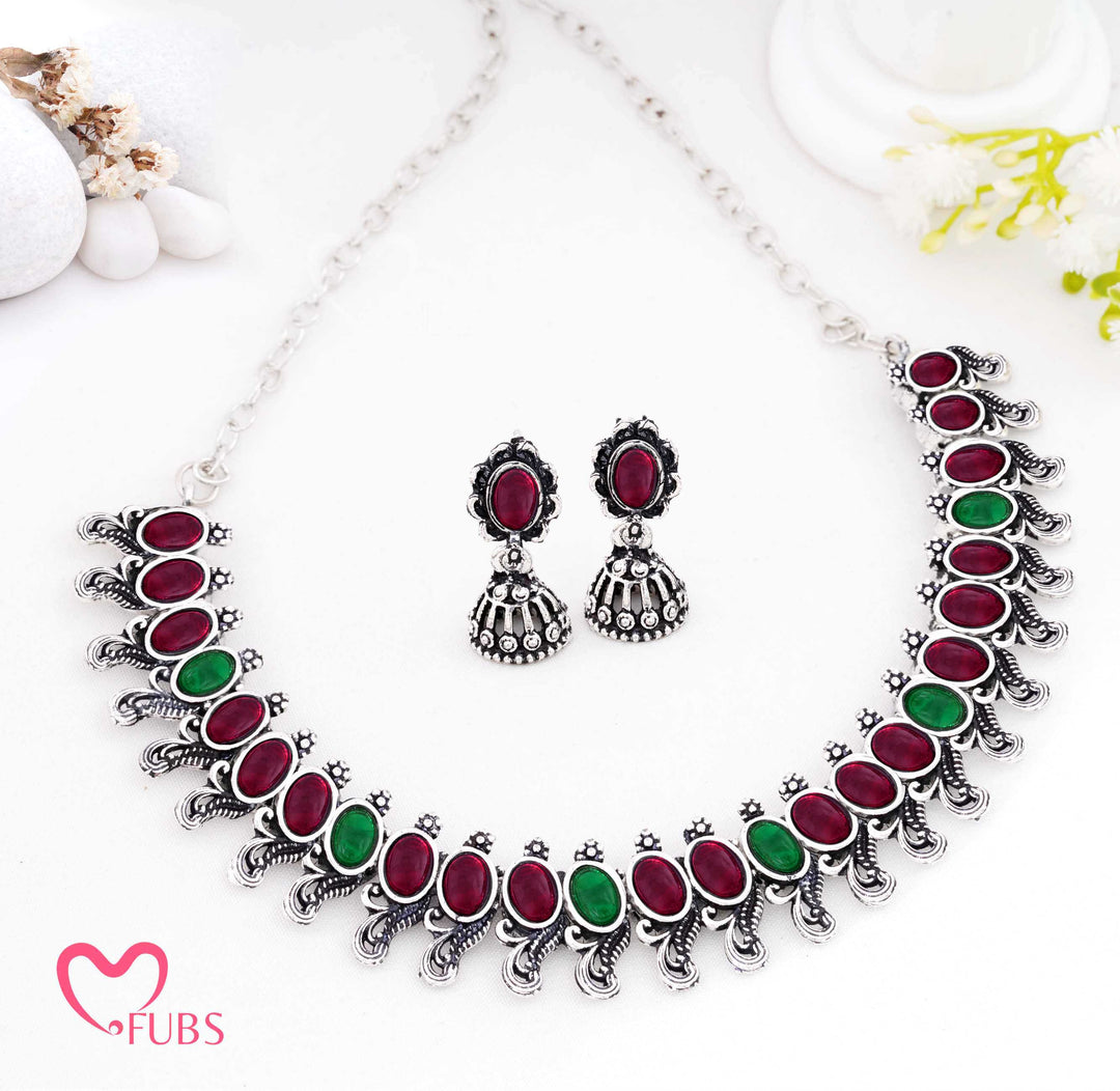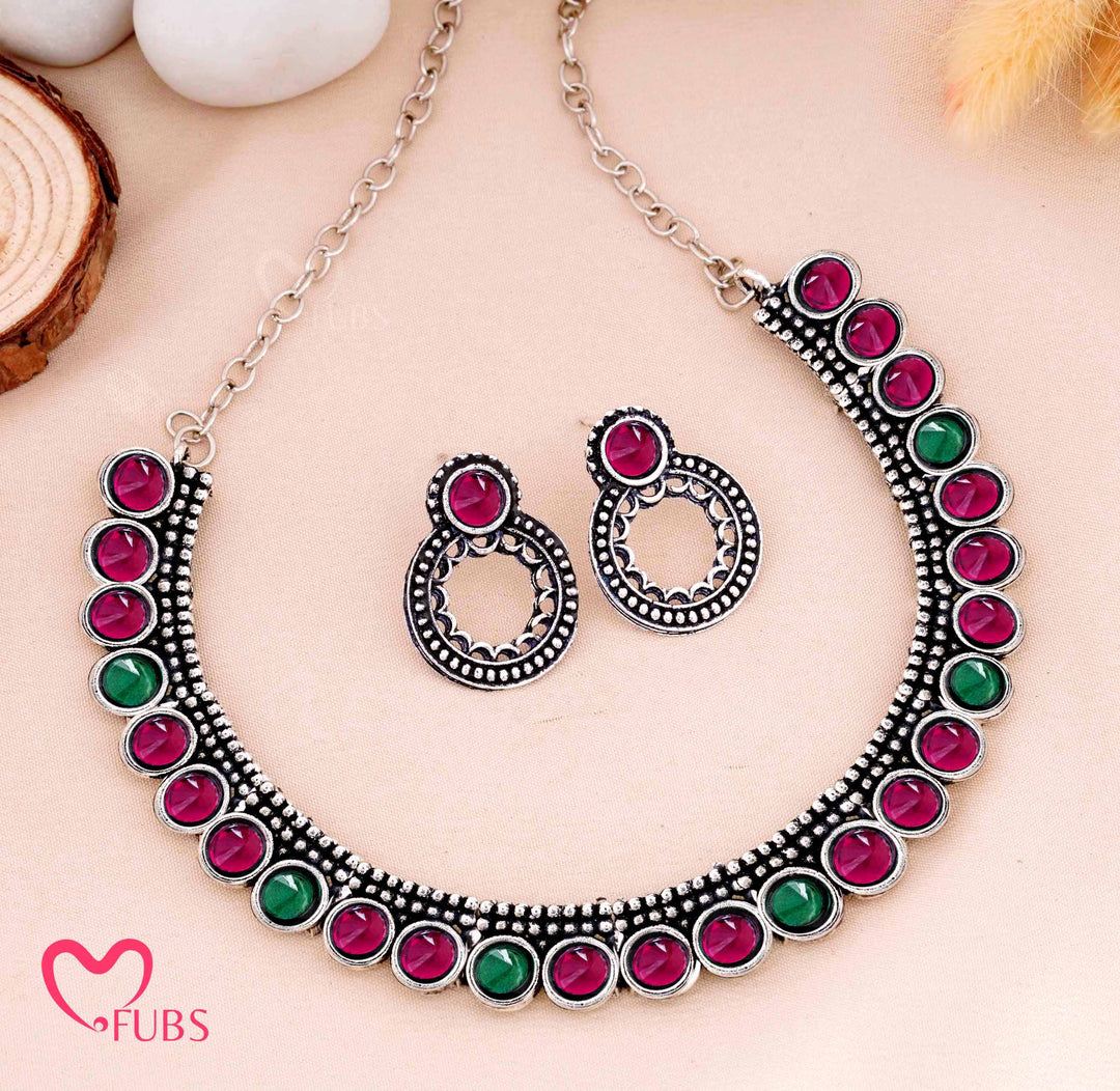 Oxidized Choker Set - Lustrous Ivory Traditional Aesthetic