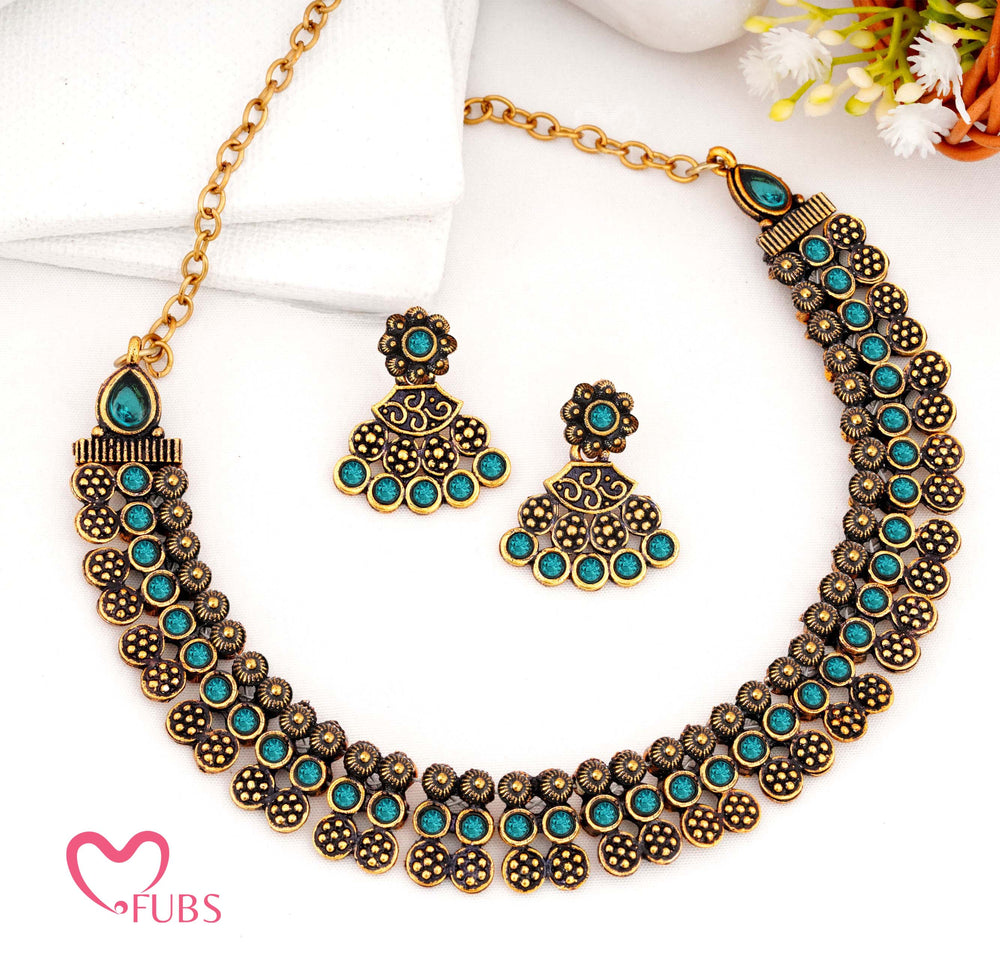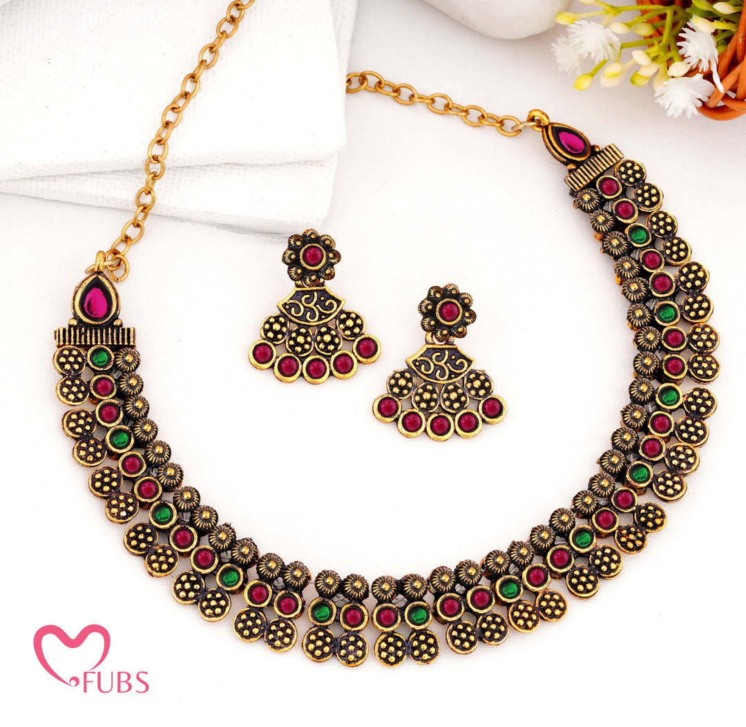 Traditional Antique Finish Choker Set with Detailed Circular Motifs