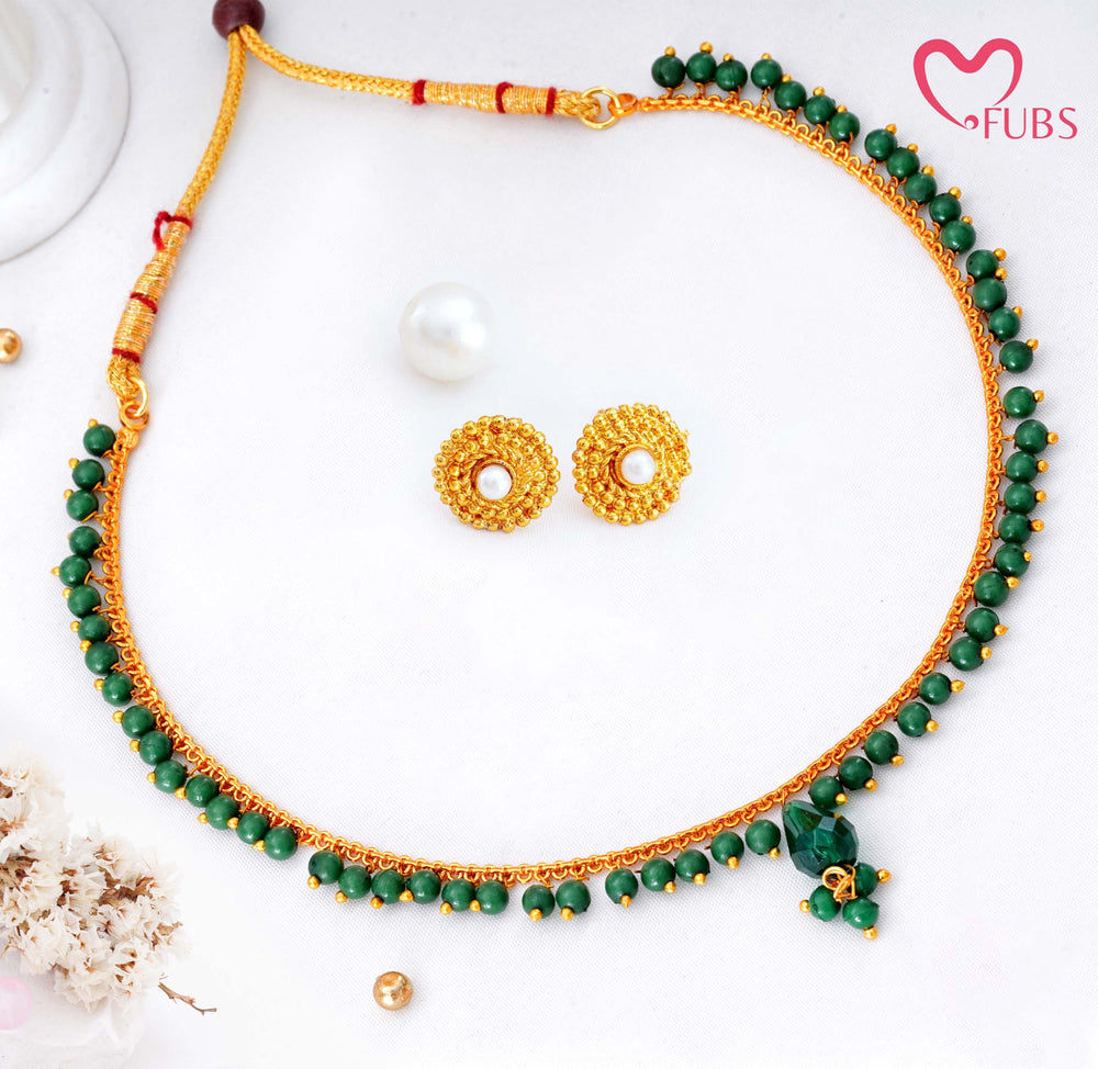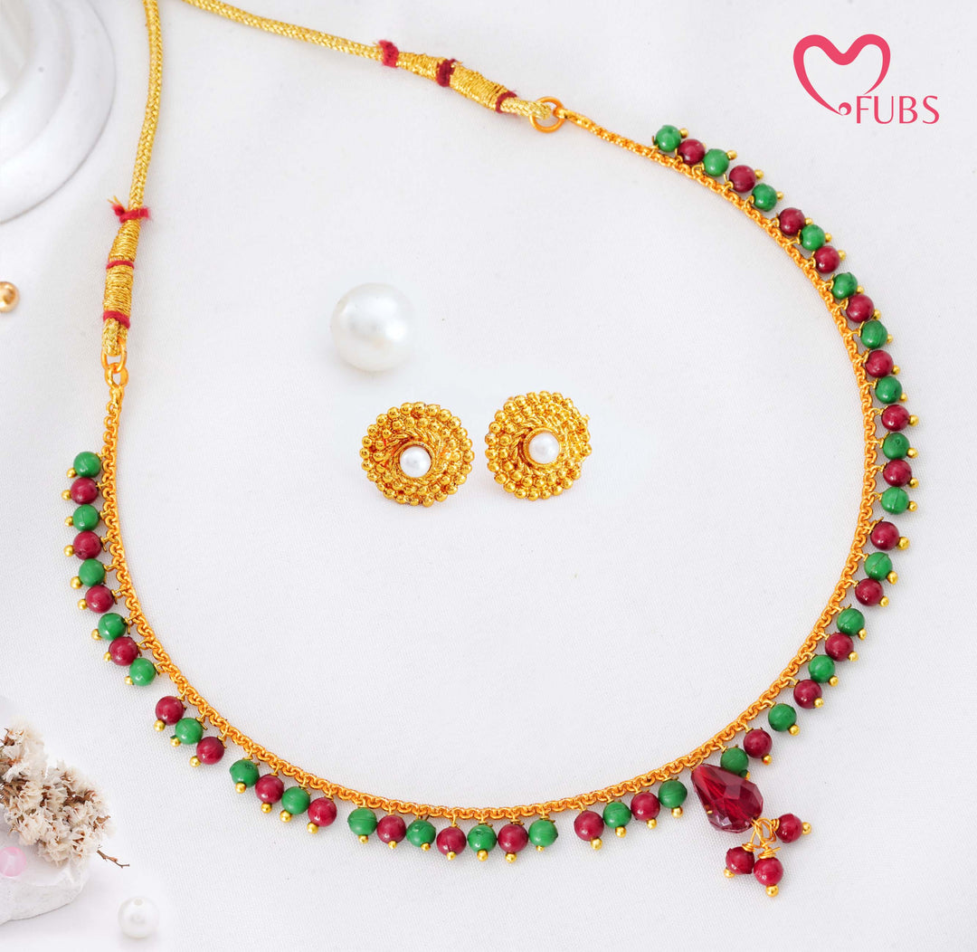 Aesthetic Traditional Beaded Necklace Set with Drop Pendant