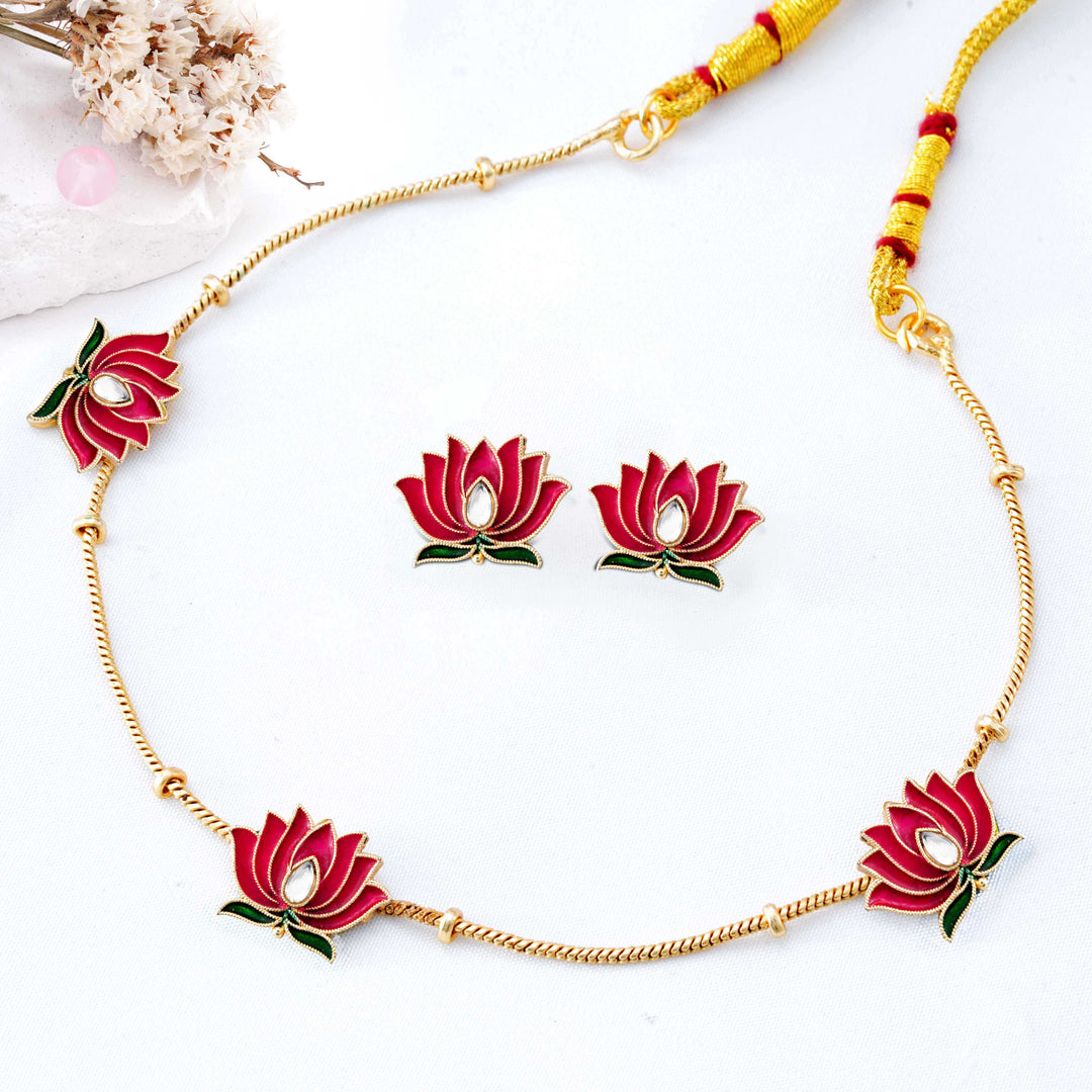Deep Enamel Lotus Choker Necklace Set (Small)