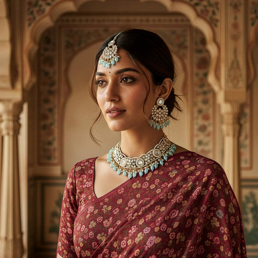 Traditional Kundan & Pearl Bridal Choker Set with Maang Tikka