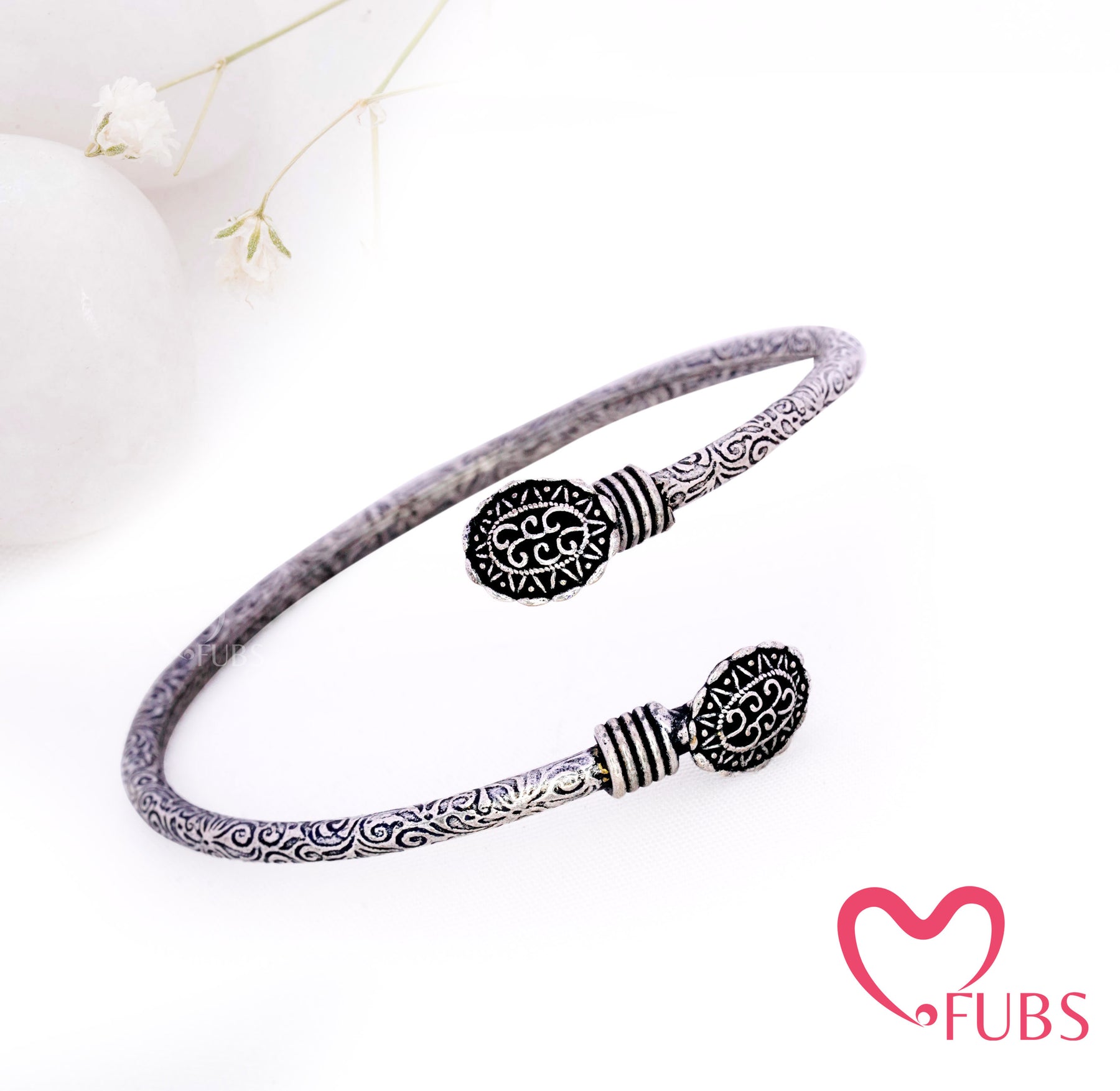 Antique Engraved Kada Bracelet with Oxidised Tribal Finish