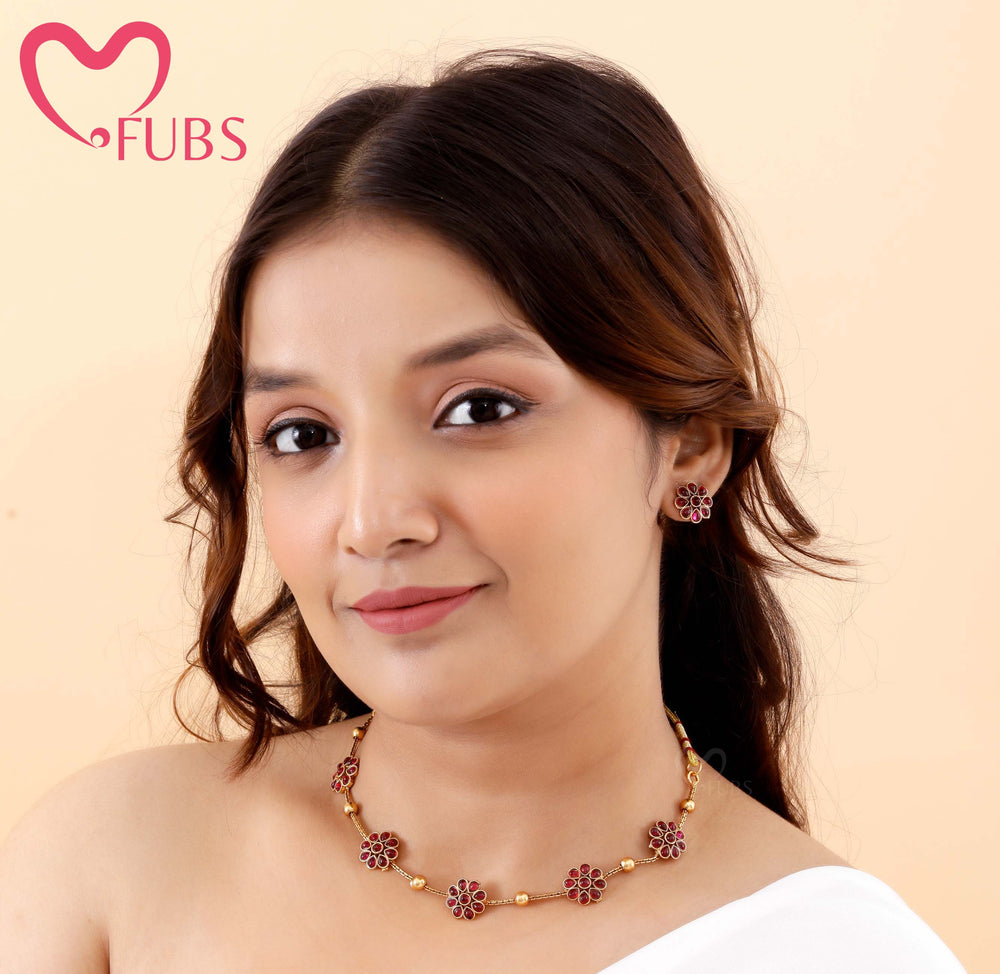 Add timeless elegance to your ethnic look with FUBS Choker Sets. Featuring traditional designs and fine detailing, these chokers are perfect for weddings, festivals, and special occasions. Comfortable to wear and rich in style, they pair beautifully with any traditional outfit.