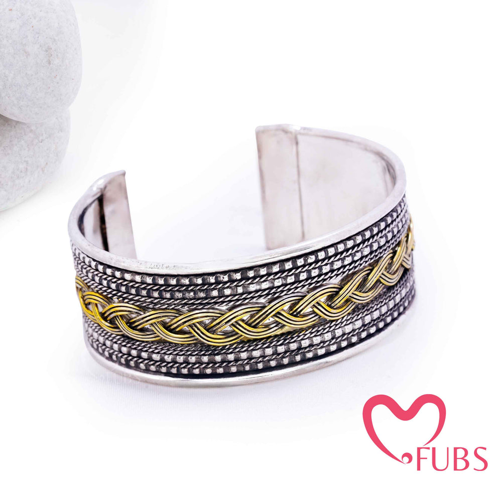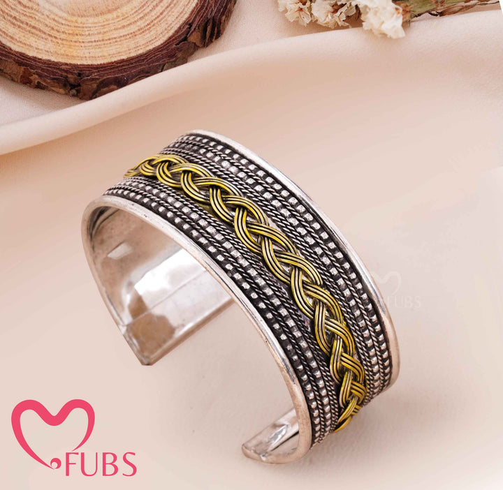 Braided Tribal Cuff Bracelet with Handcrafted Oxidised Finish