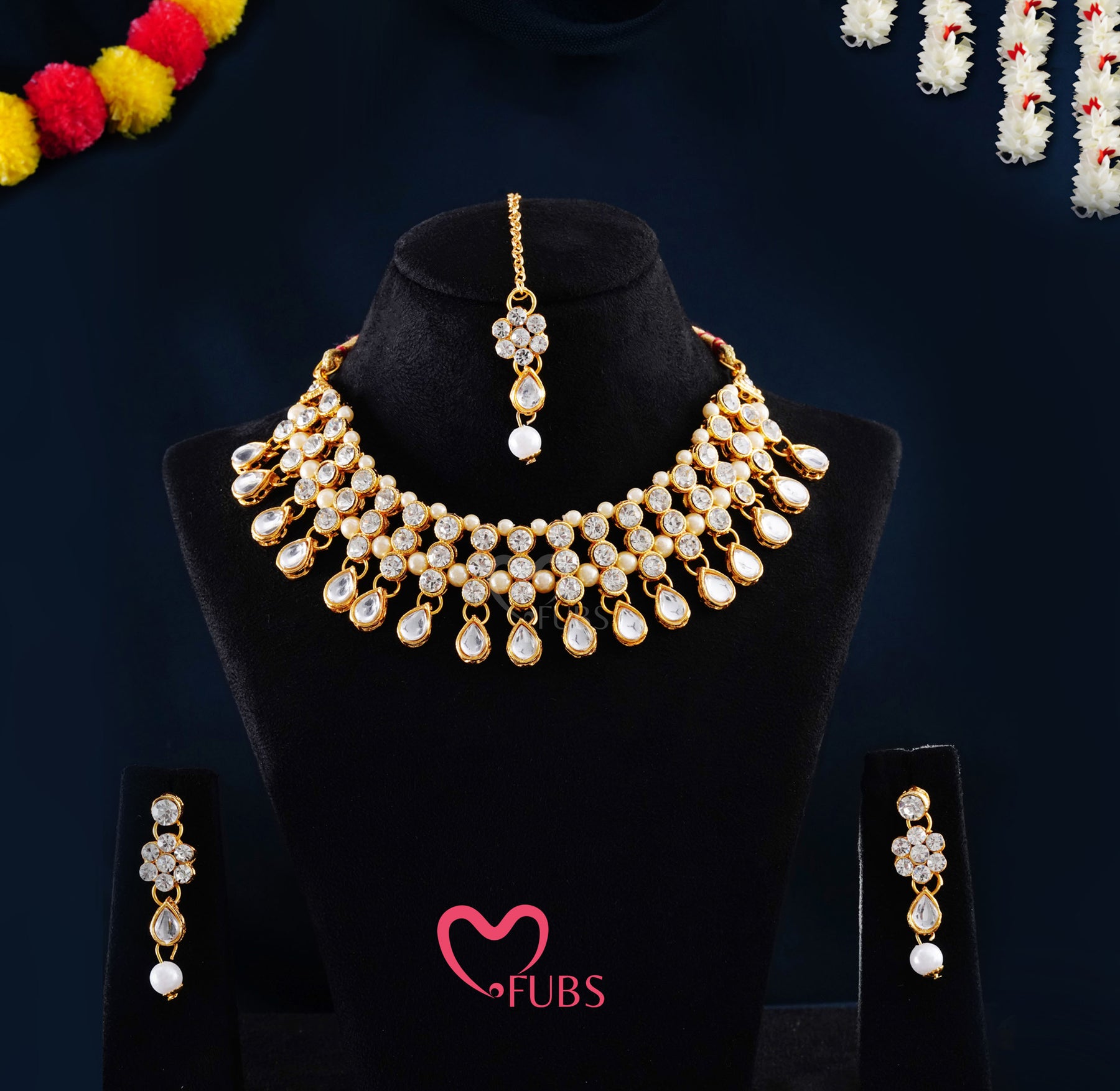 Add timeless elegance to your ethnic look with FUBS Choker Sets. Featuring traditional designs and fine detailing, these chokers are perfect for weddings, festivals, and special occasions. Comfortable to wear and rich in style, they pair beautifully with any traditional outfit.