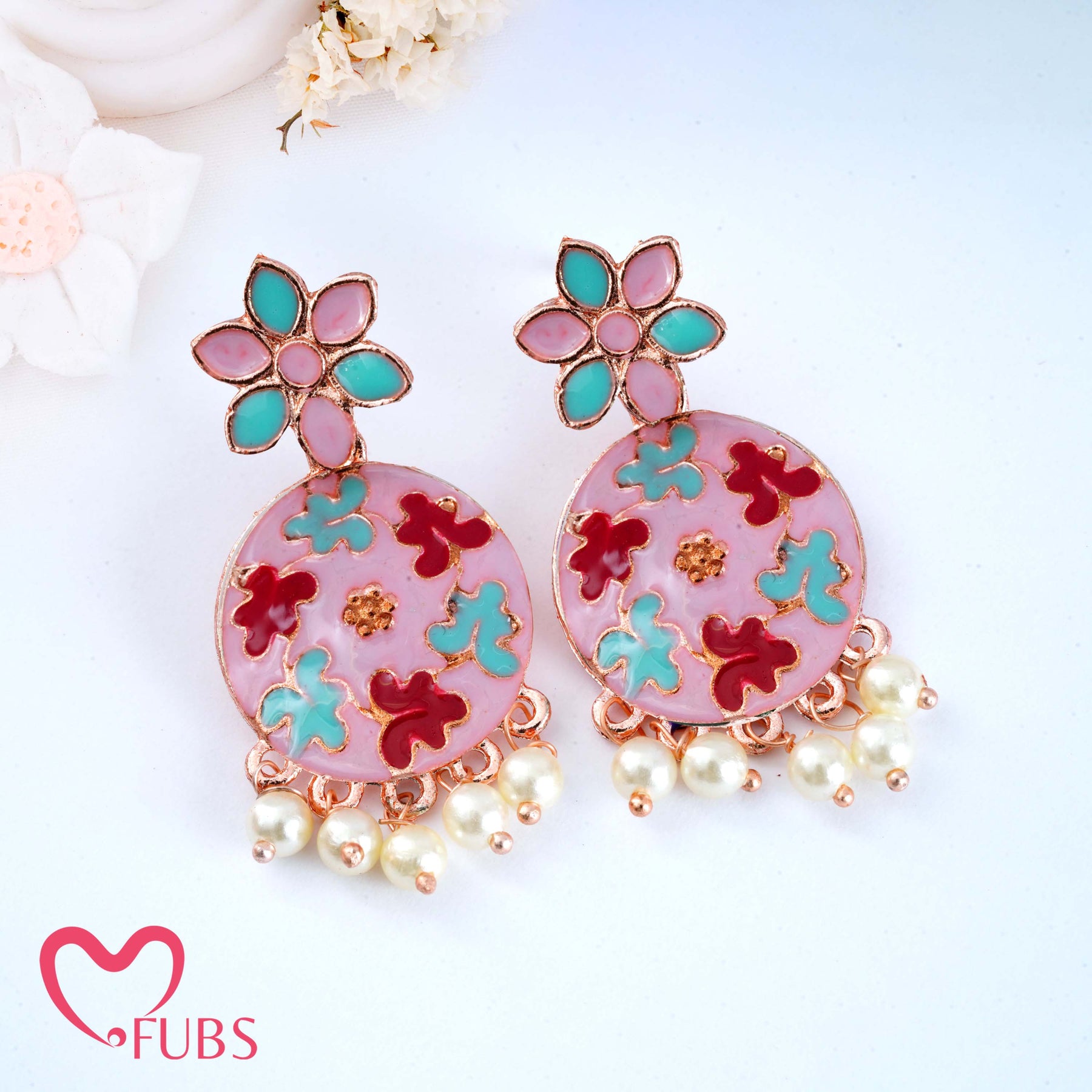 Floral Motif Earrings with Pearls & Vibrant Design
