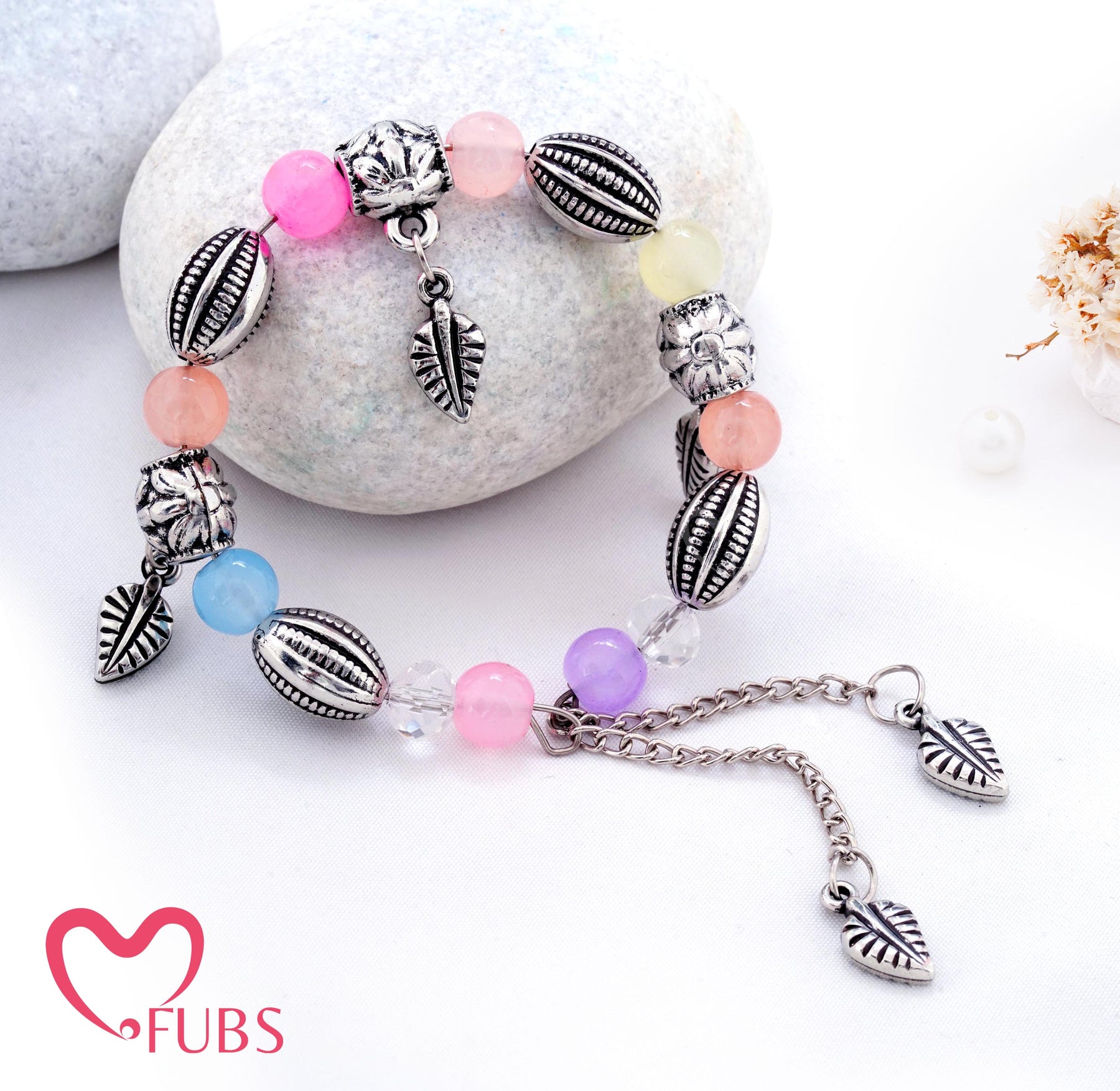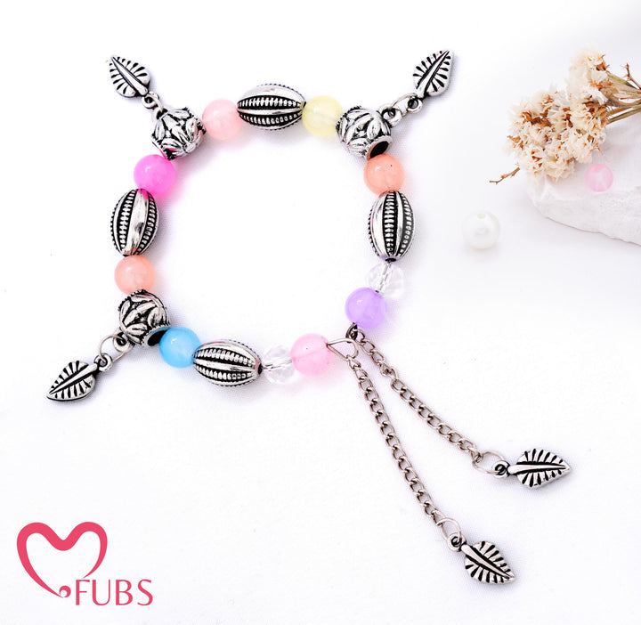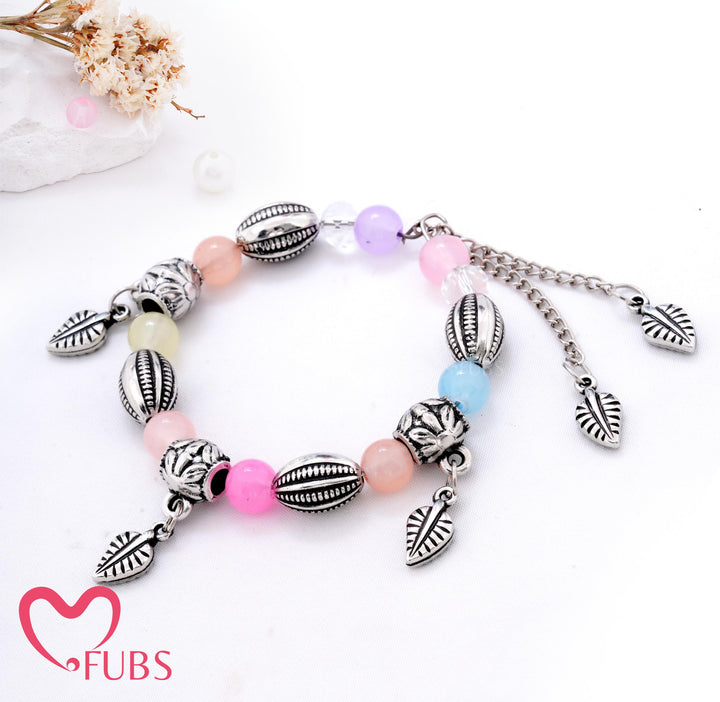 Multicolor Beaded Oxidized Bracelet with Leaf Charms
