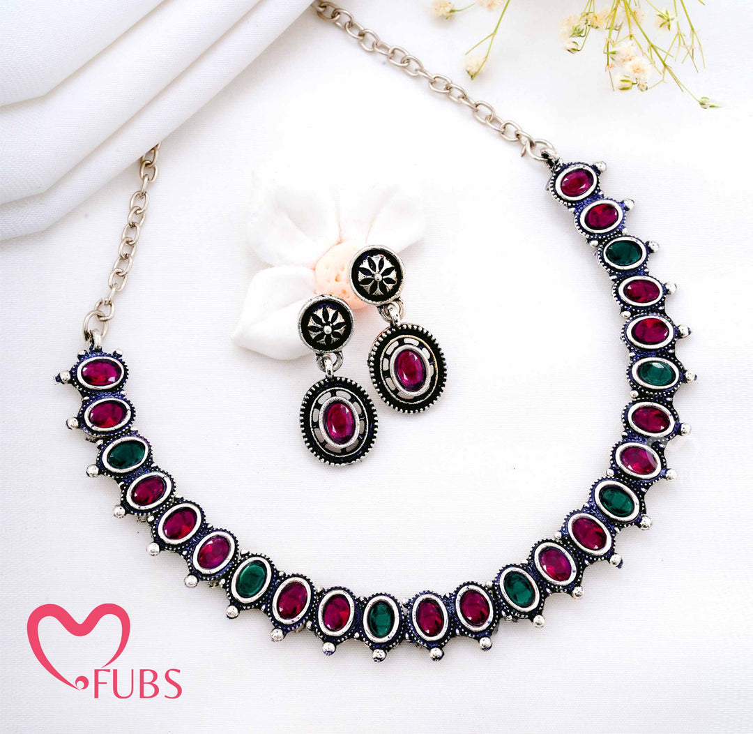 Add timeless elegance to your ethnic look with FUBS Choker Sets. Featuring traditional designs and fine detailing, these chokers are perfect for weddings, festivals, and special occasions. Comfortable to wear and rich in style, they pair beautifully with any traditional outfit.