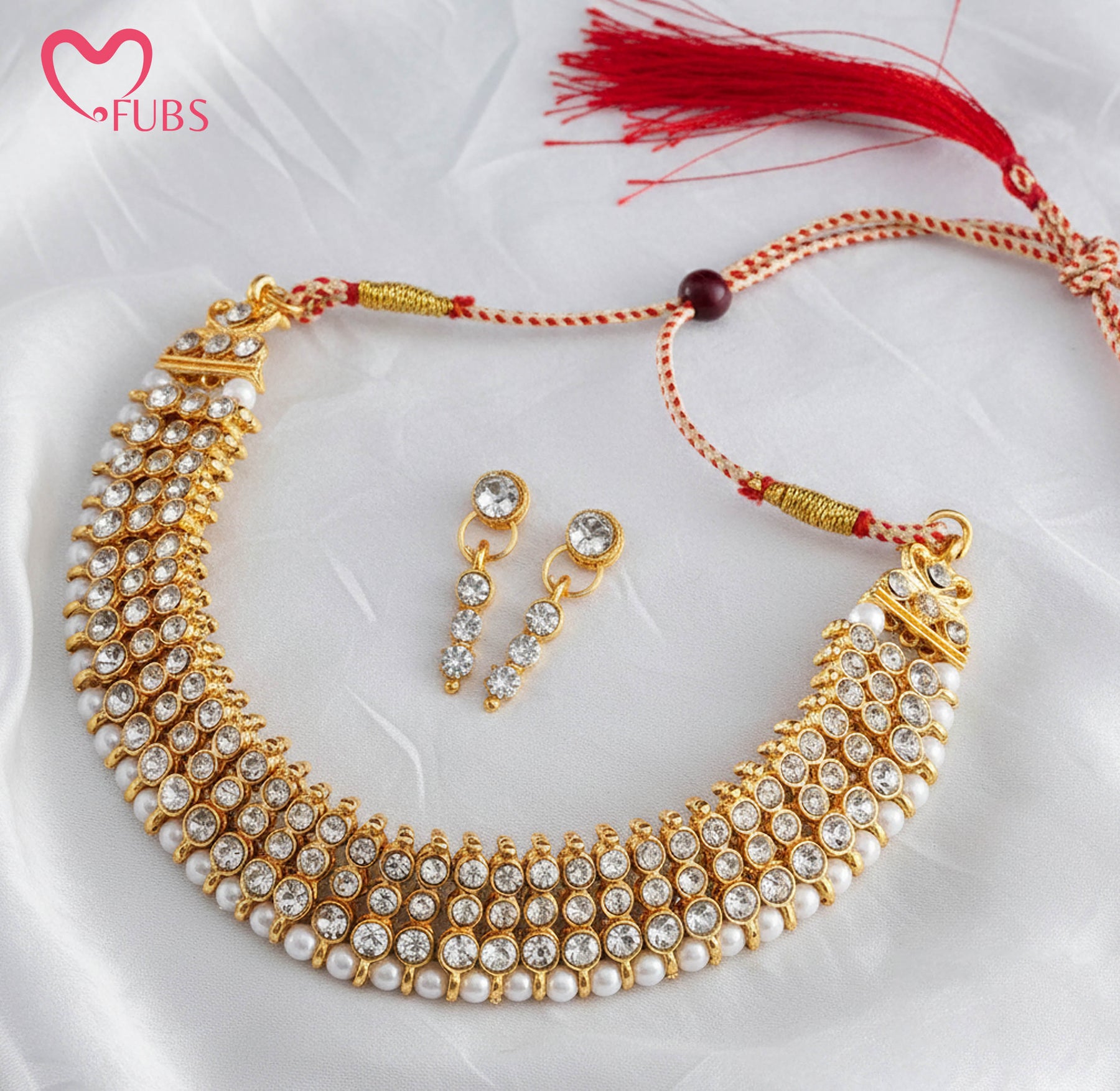 Add timeless elegance to your ethnic look with FUBS Choker Sets. Featuring traditional designs and fine detailing, these chokers are perfect for weddings, festivals, and special occasions. Comfortable to wear and rich in style, they pair beautifully with any traditional outfit.