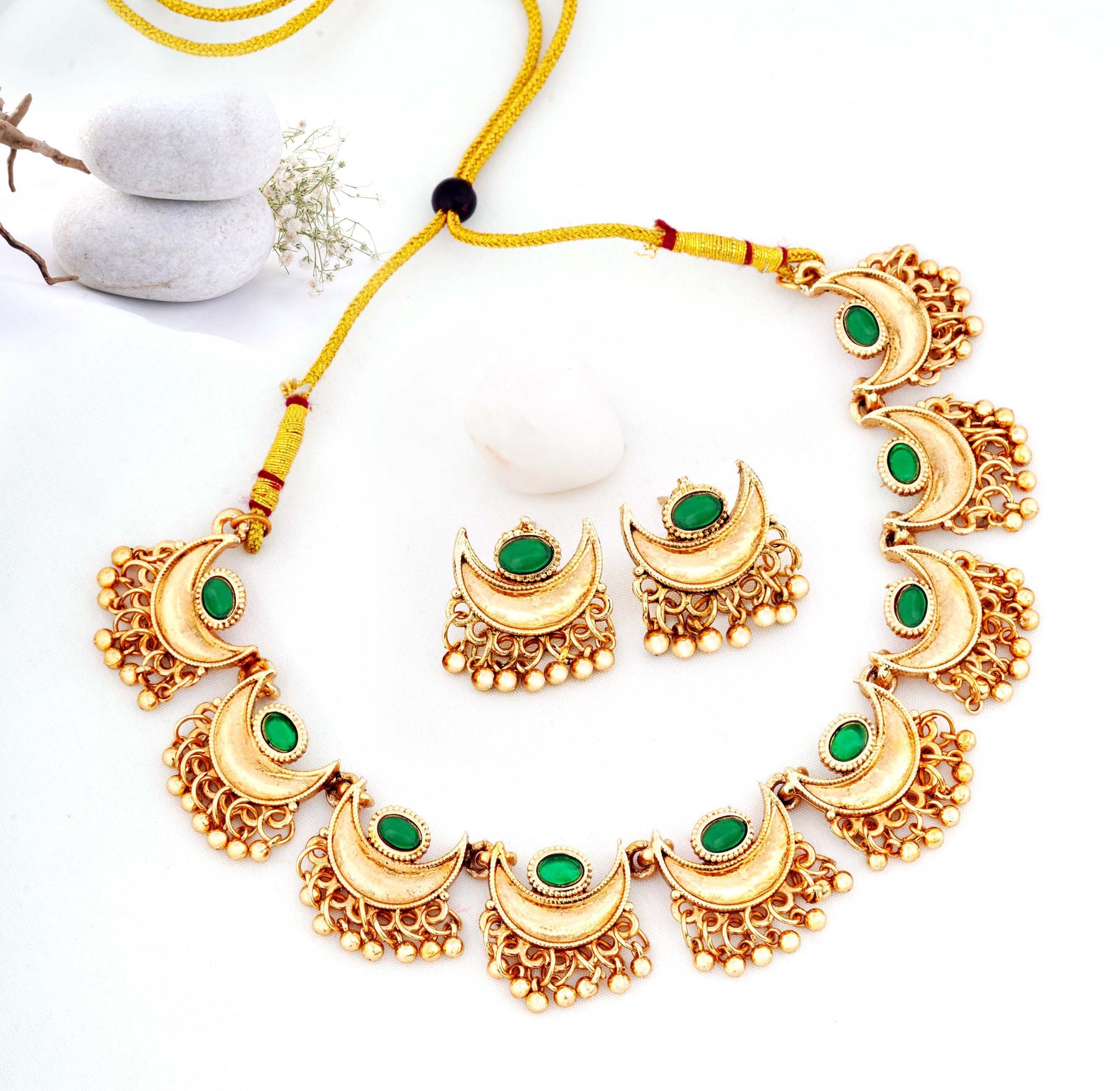 Traditional Crescent Moon Necklace Set with Earrings