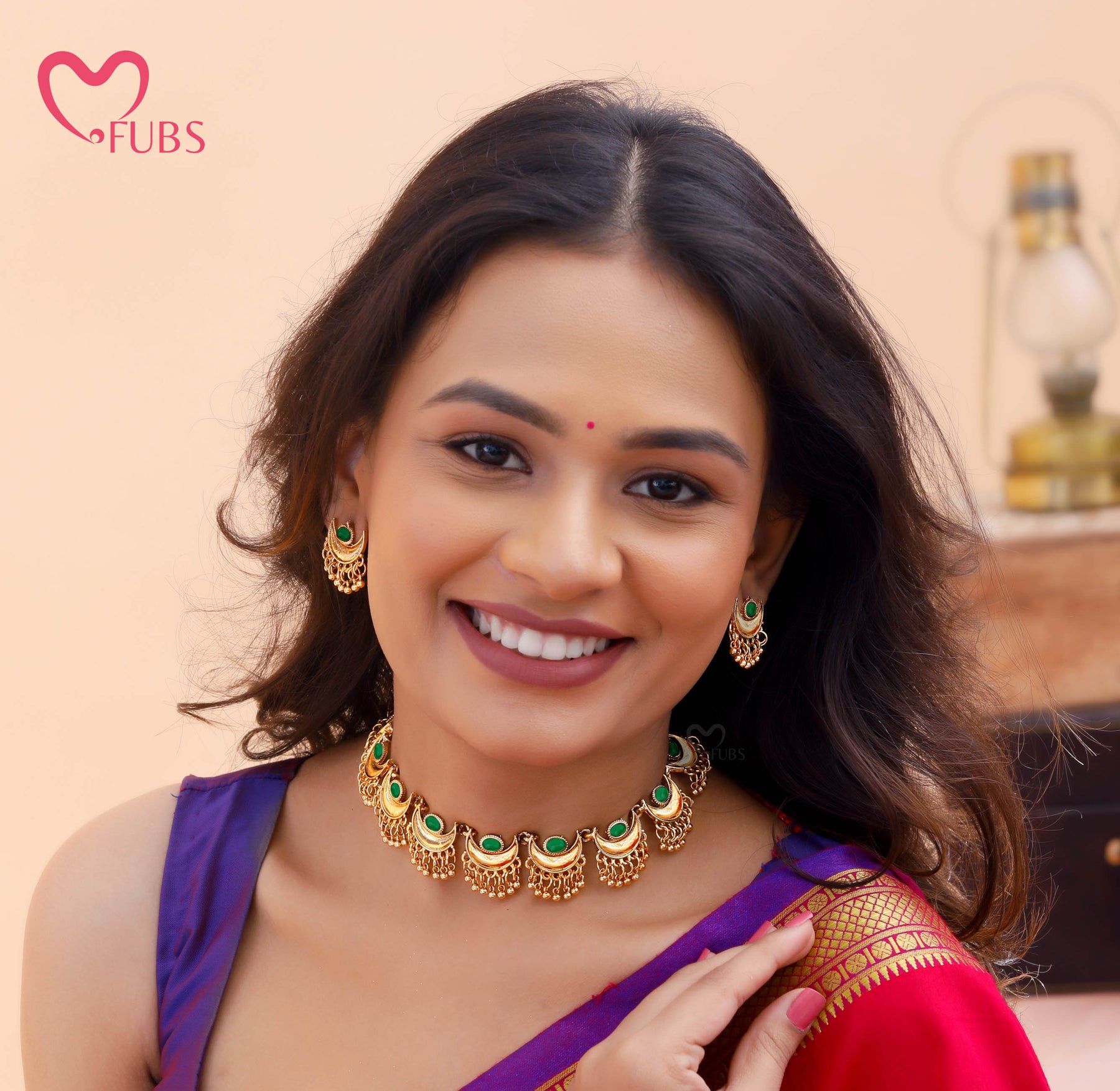 Add timeless elegance to your ethnic look with FUBS Choker Sets. Featuring traditional designs and fine detailing, these chokers are perfect for weddings, festivals, and special occasions. Comfortable to wear and rich in style, they pair beautifully with any traditional outfit.